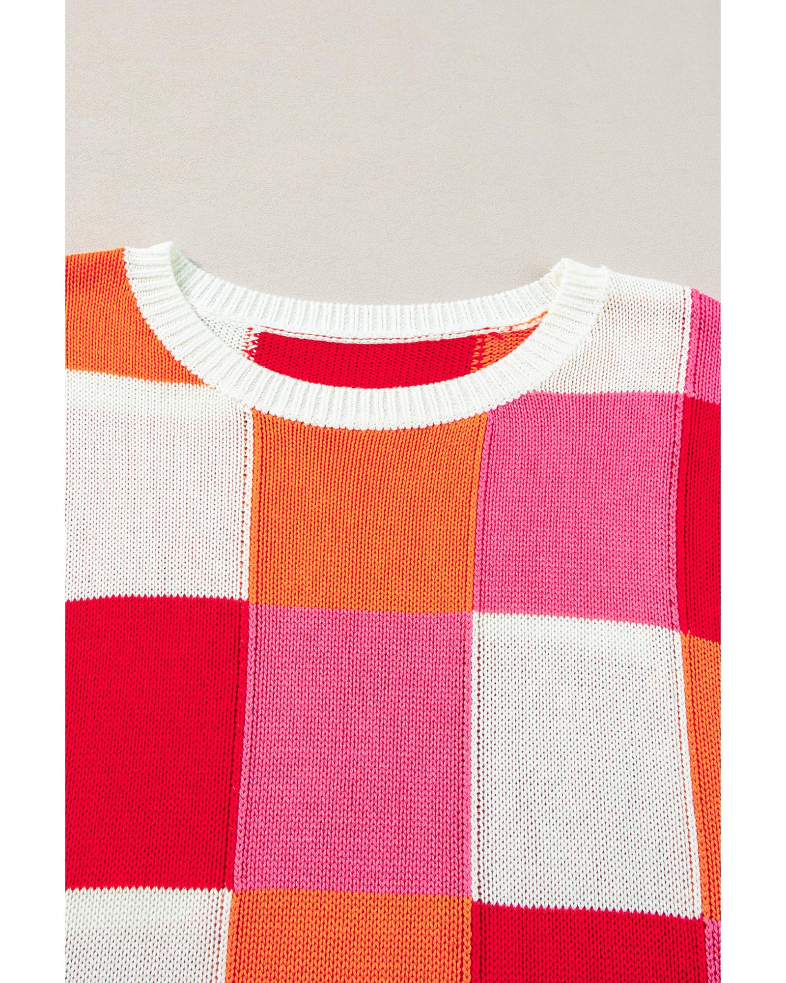 Fiery Red Color Block Cap Sleeve Sweater – S