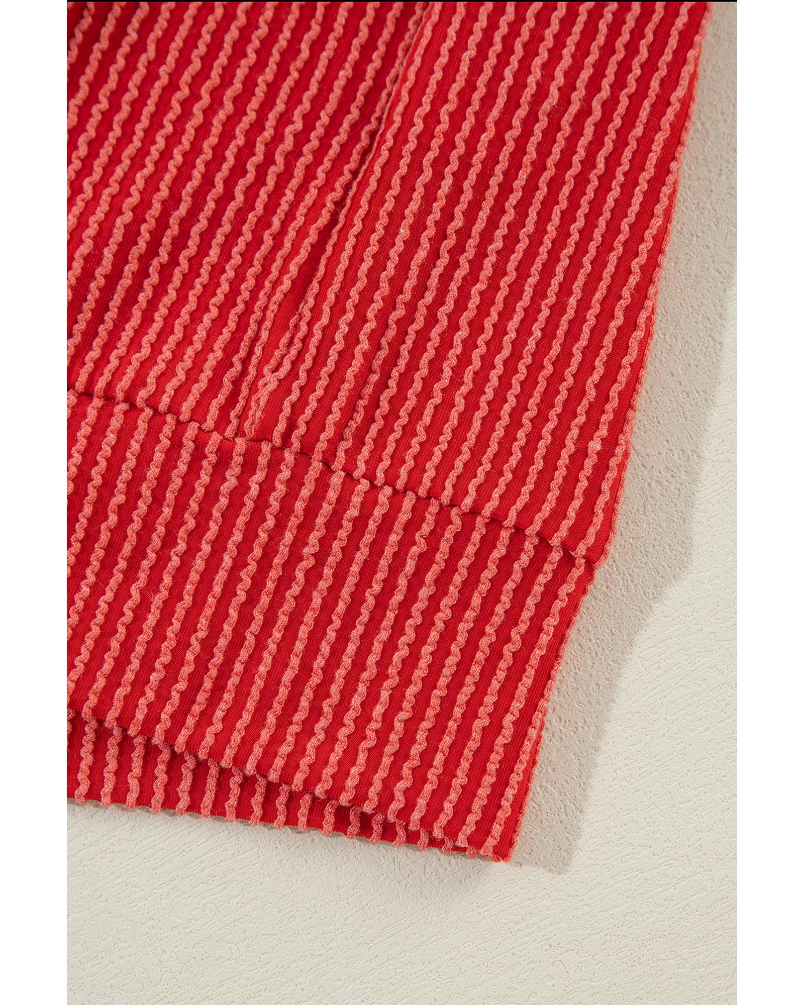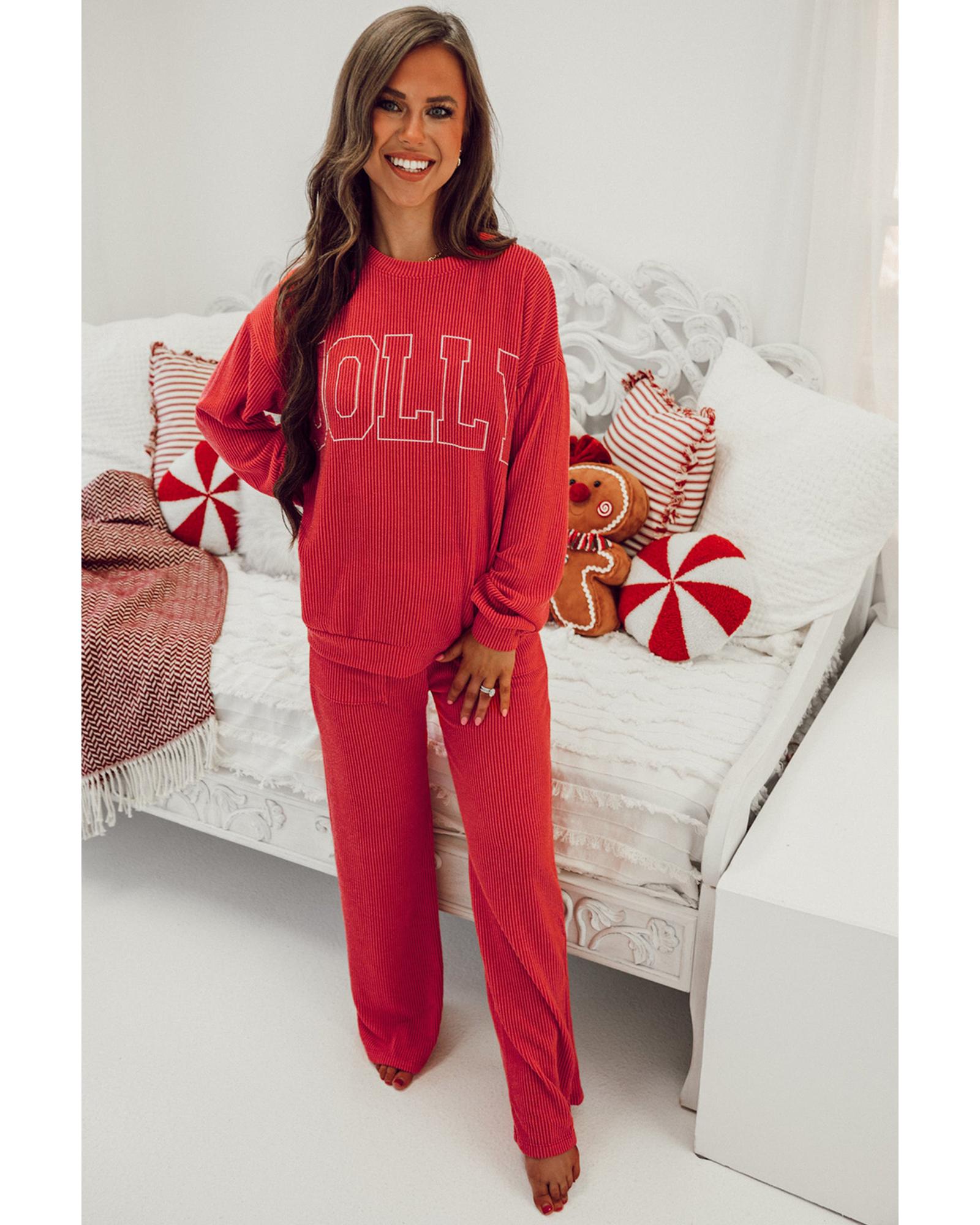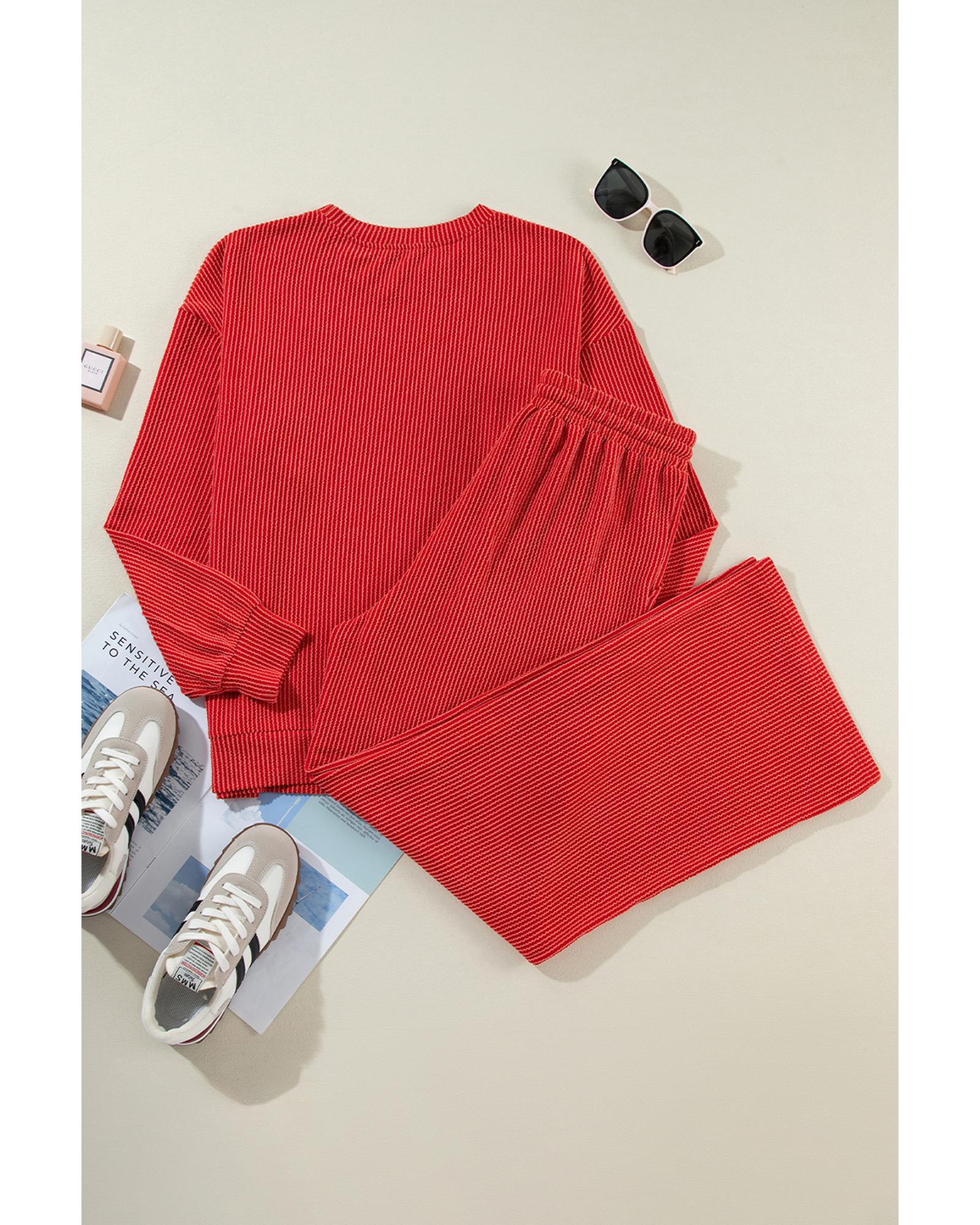 Fiery Red JOLLY Corded Long Sleeve Top and Pockets Pants Set – L