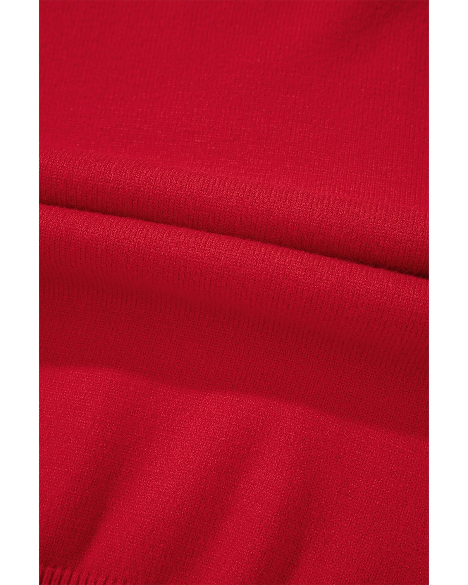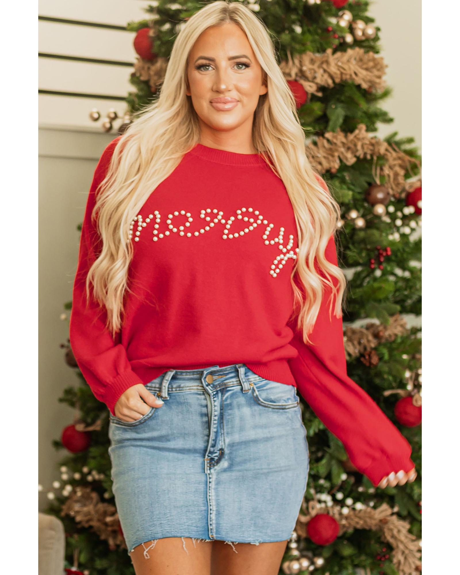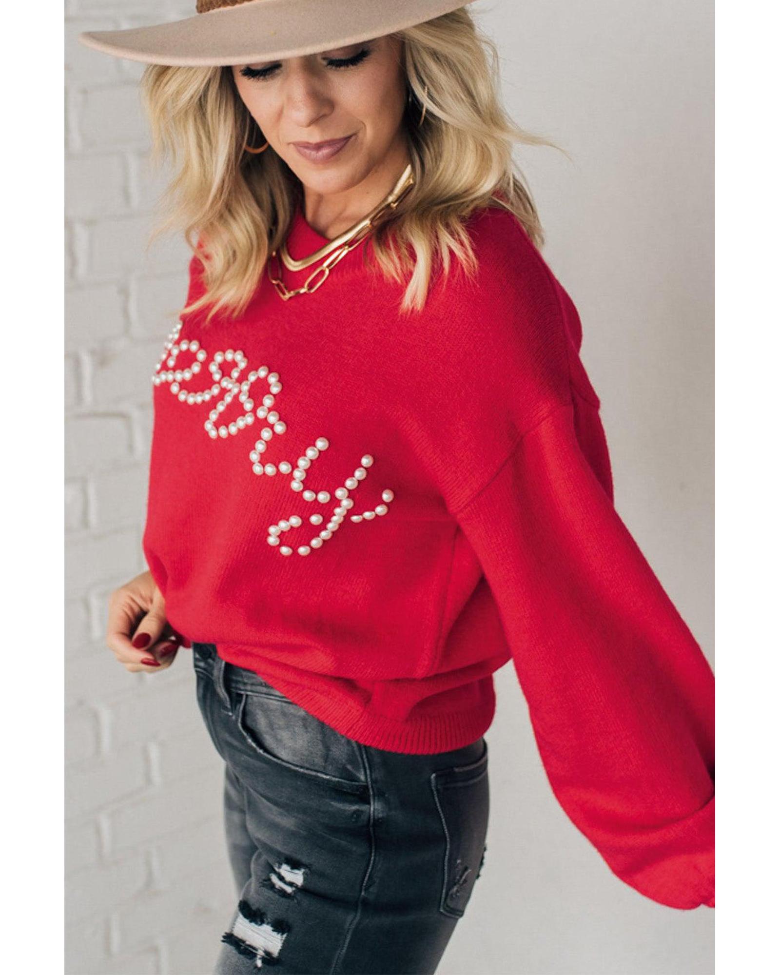 Fiery Red Pearl Beaded Merry Casual Sweater – S