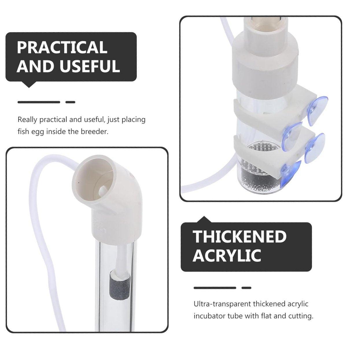 environment for hatching fish eggs, particularly for cichlids, catfish, and other egg-laying species. The high-quality, thickened acrylic construction ensures durability and allows for clear observation of the hatching process. With its practical design and ease of installation, this breeding box is an essential tool for both beginner and experienced fish breeders. It ensures optimal oxygenation and water flow, promoting healthy development of fish eggs and increasing hatch success rates.