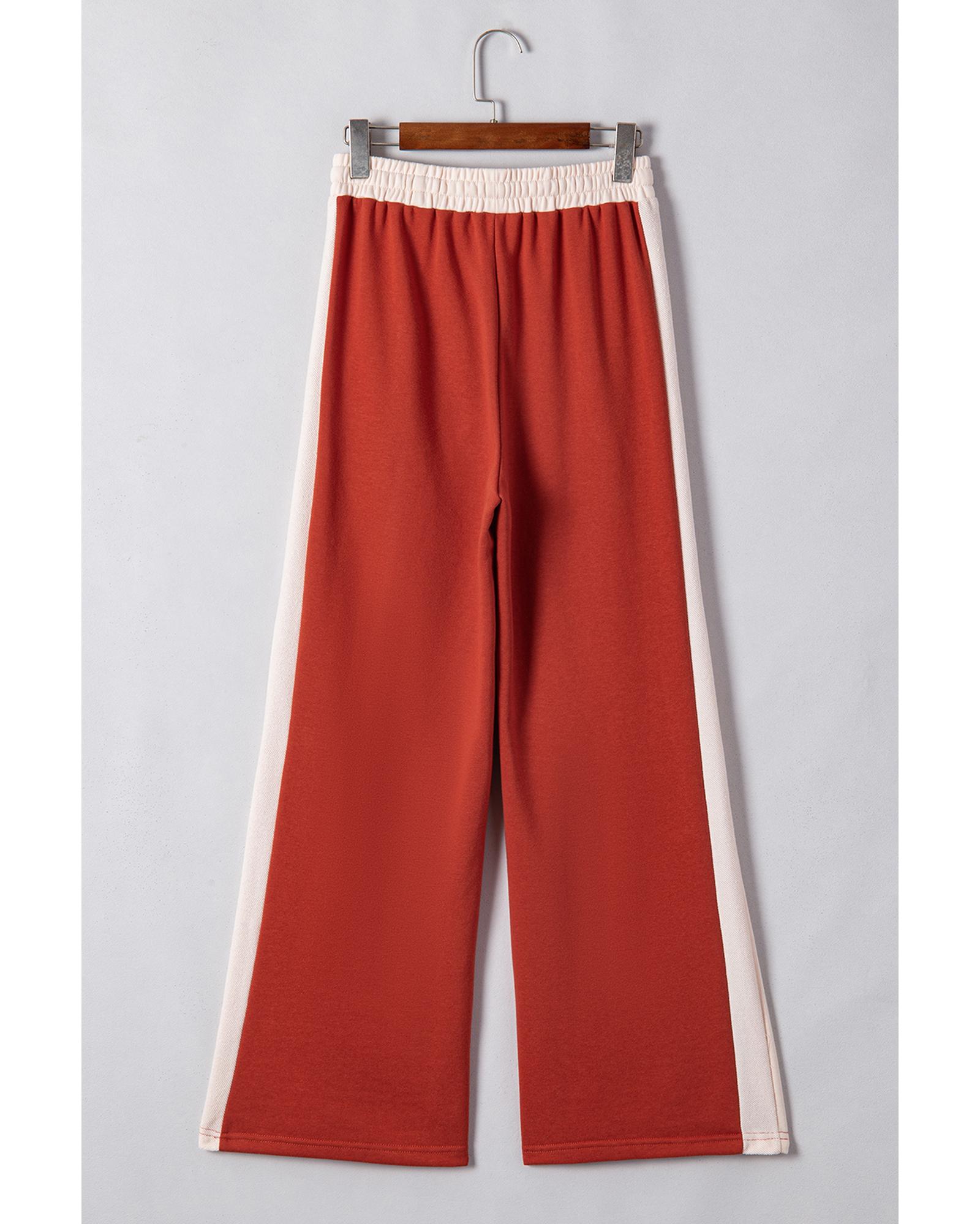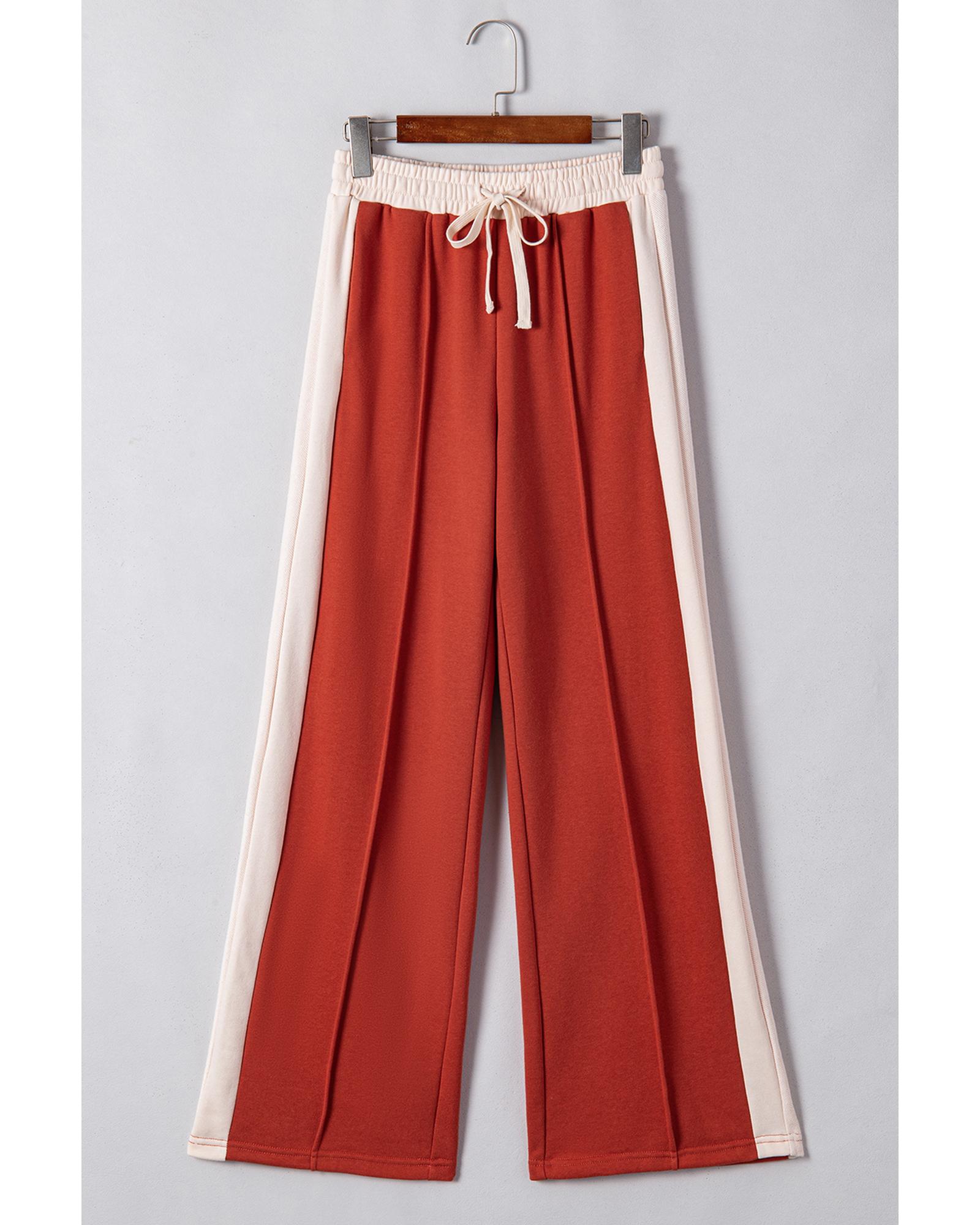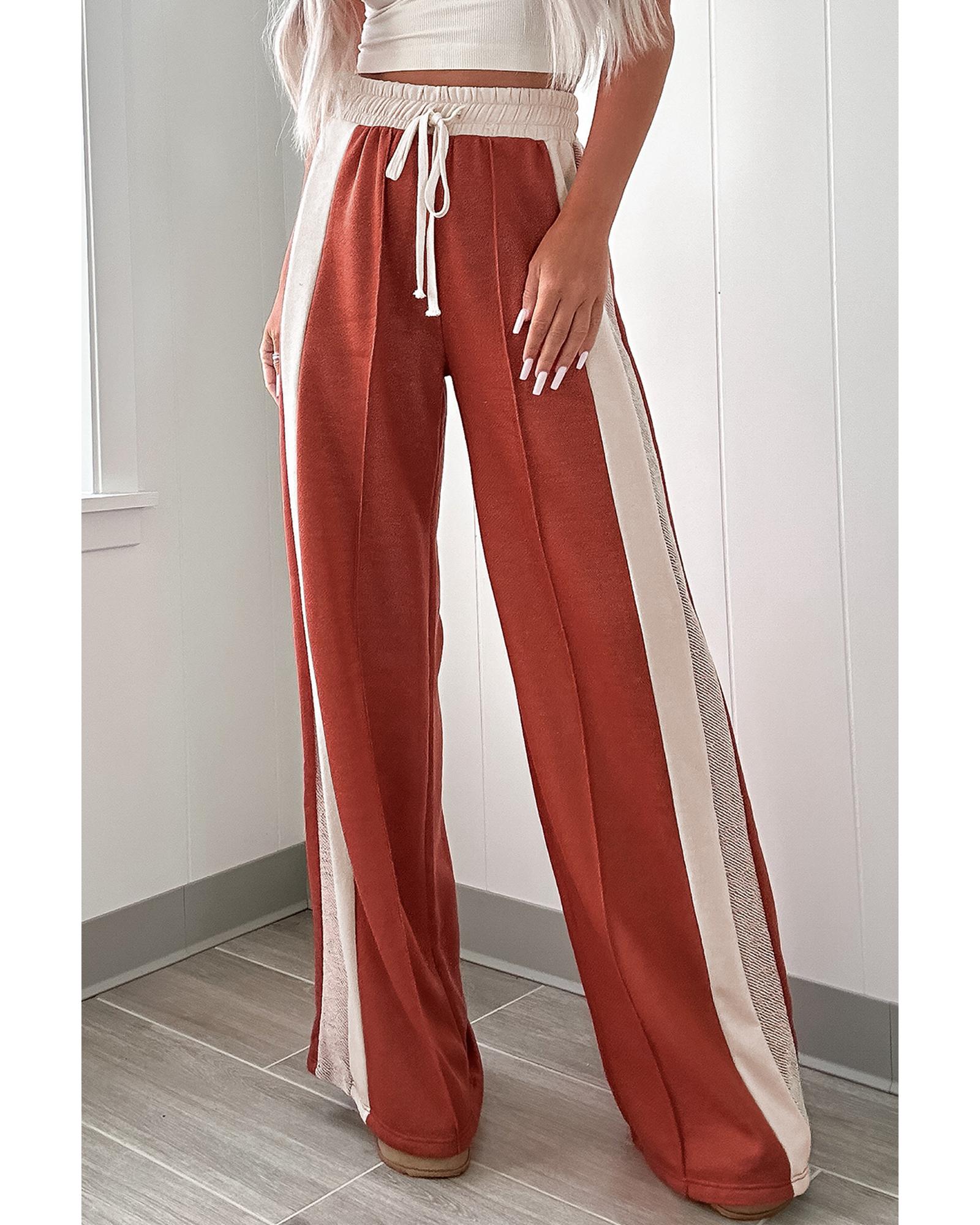 Flamingo Color Block Drawstring High Waist Wide Leg Pants – M