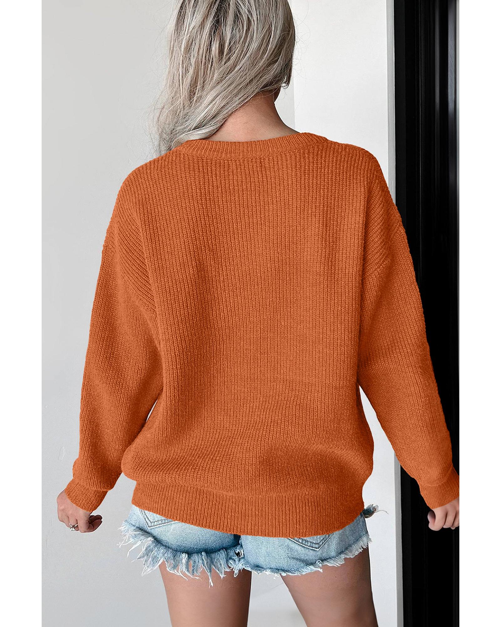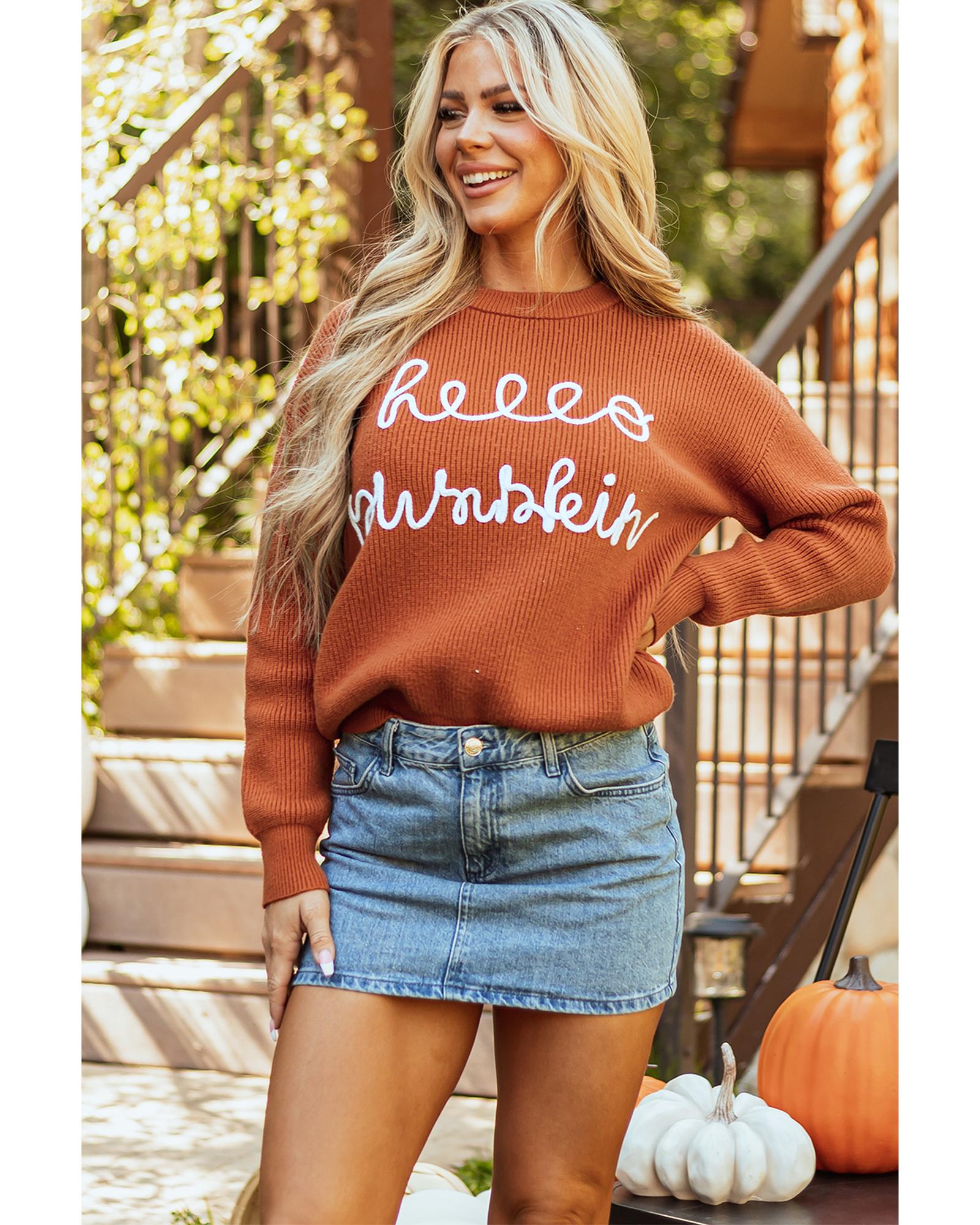 - Cozy sweater with a hello pumpkin text in a cursive font