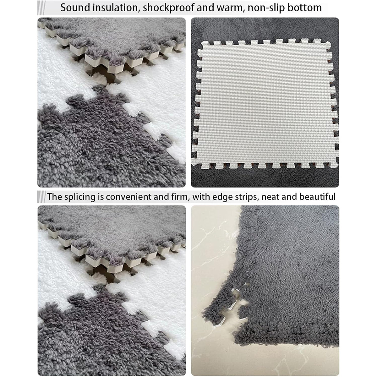 Foam Floor Mats Set 10PCS Shaggy Interlocking Tiles Soft for Kids Room Play Area – Grey-White