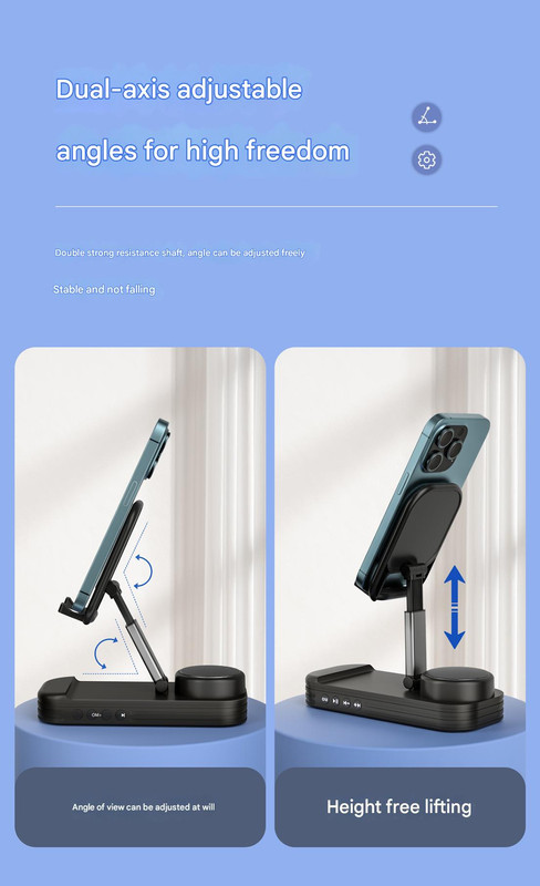 Foldable Desktop Phone Stand with Bluetooth 5.3 Speaker – Adjustable Angle & Height, TF/Line-In