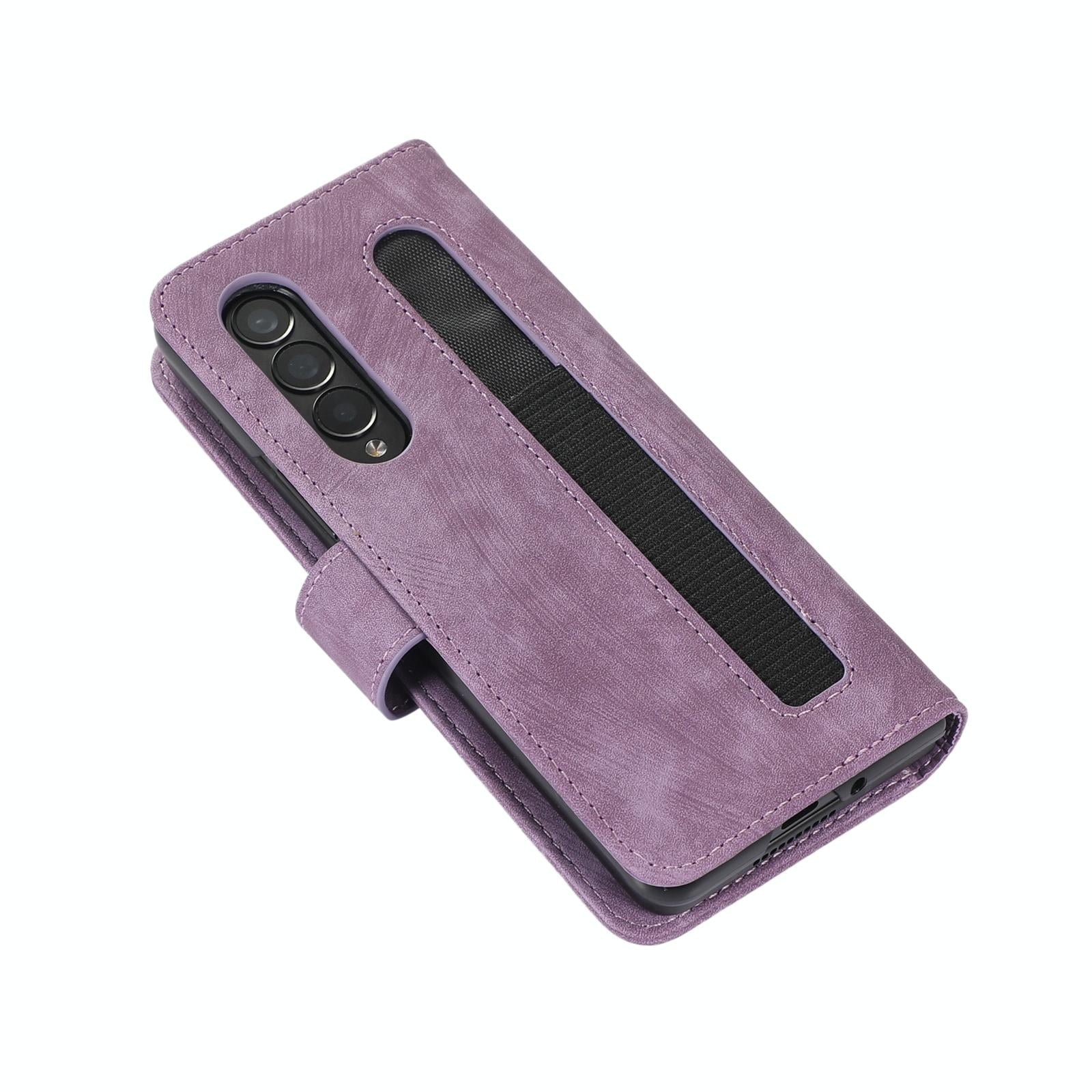 For Samsung Galaxy Z Fold4 5G Leather Phone Case With Pen Slot – Horizontal Flip – Purple