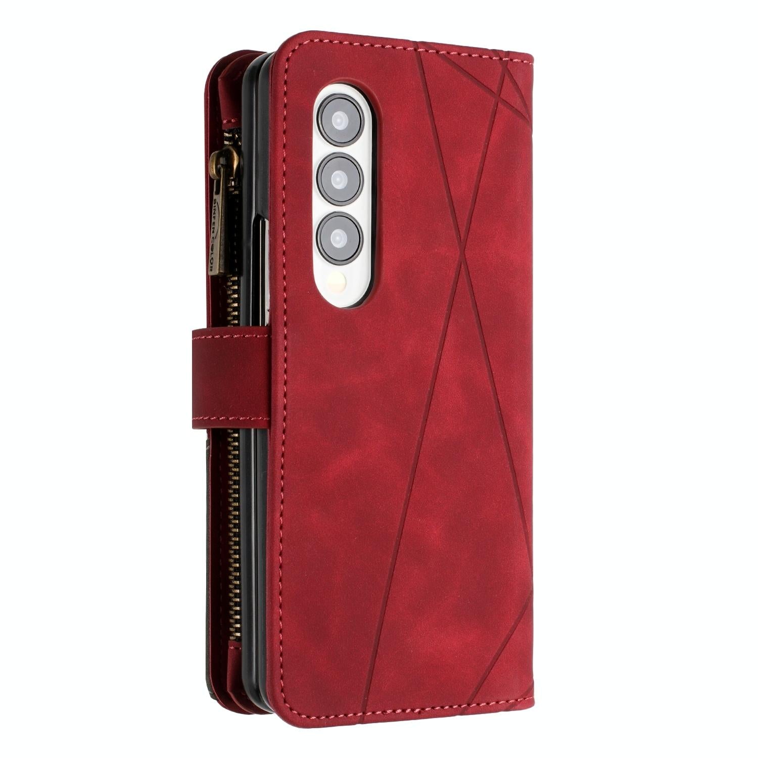 For Samsung Galaxy Z Fold4 5G Leather Zip Wallet With Rhombus Texture - Red
