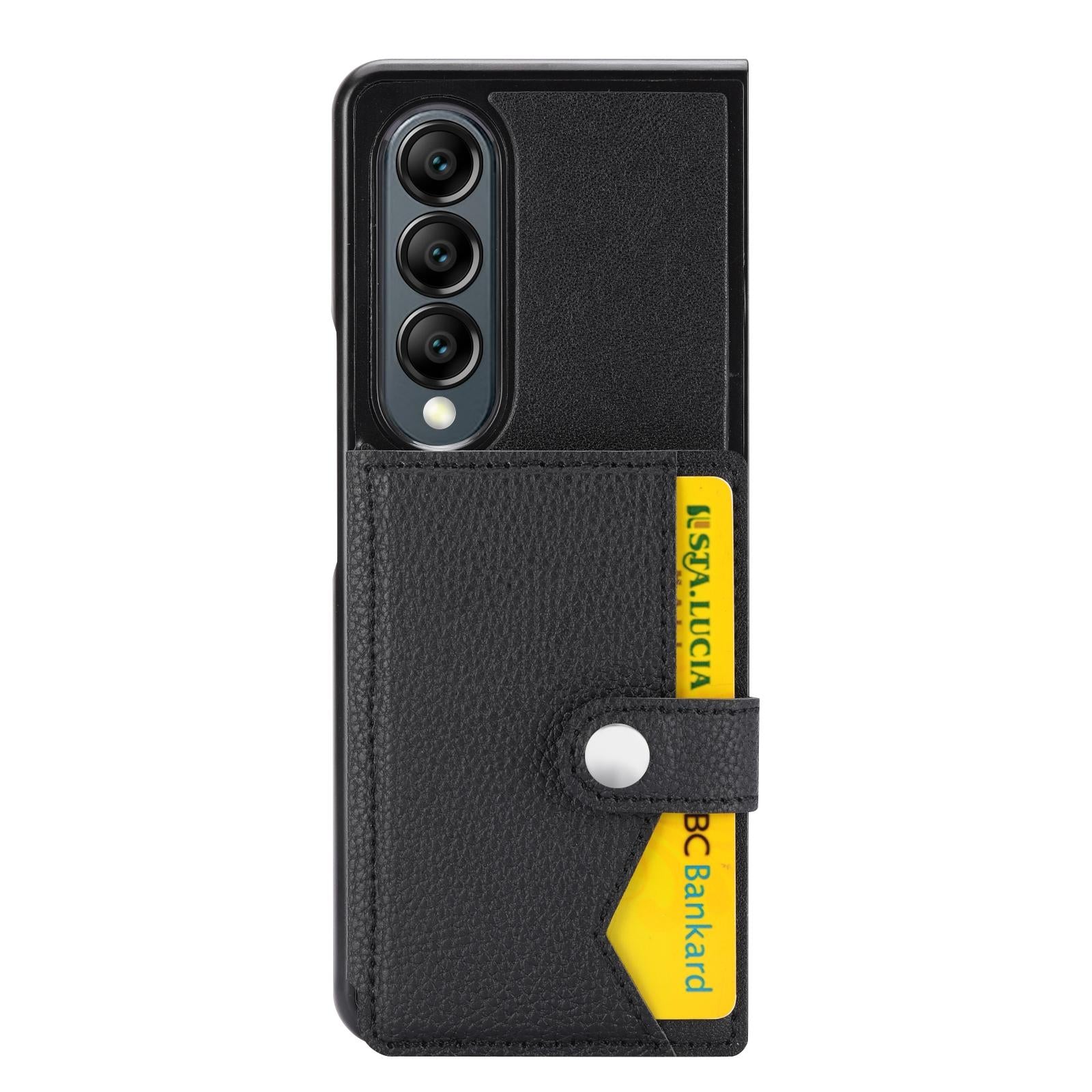 For Samsung Galaxy Z Fold4 5G Samsung Galaxy Z Fold4 Litchi Pattern Single Button Card Holder Phone Case – Black