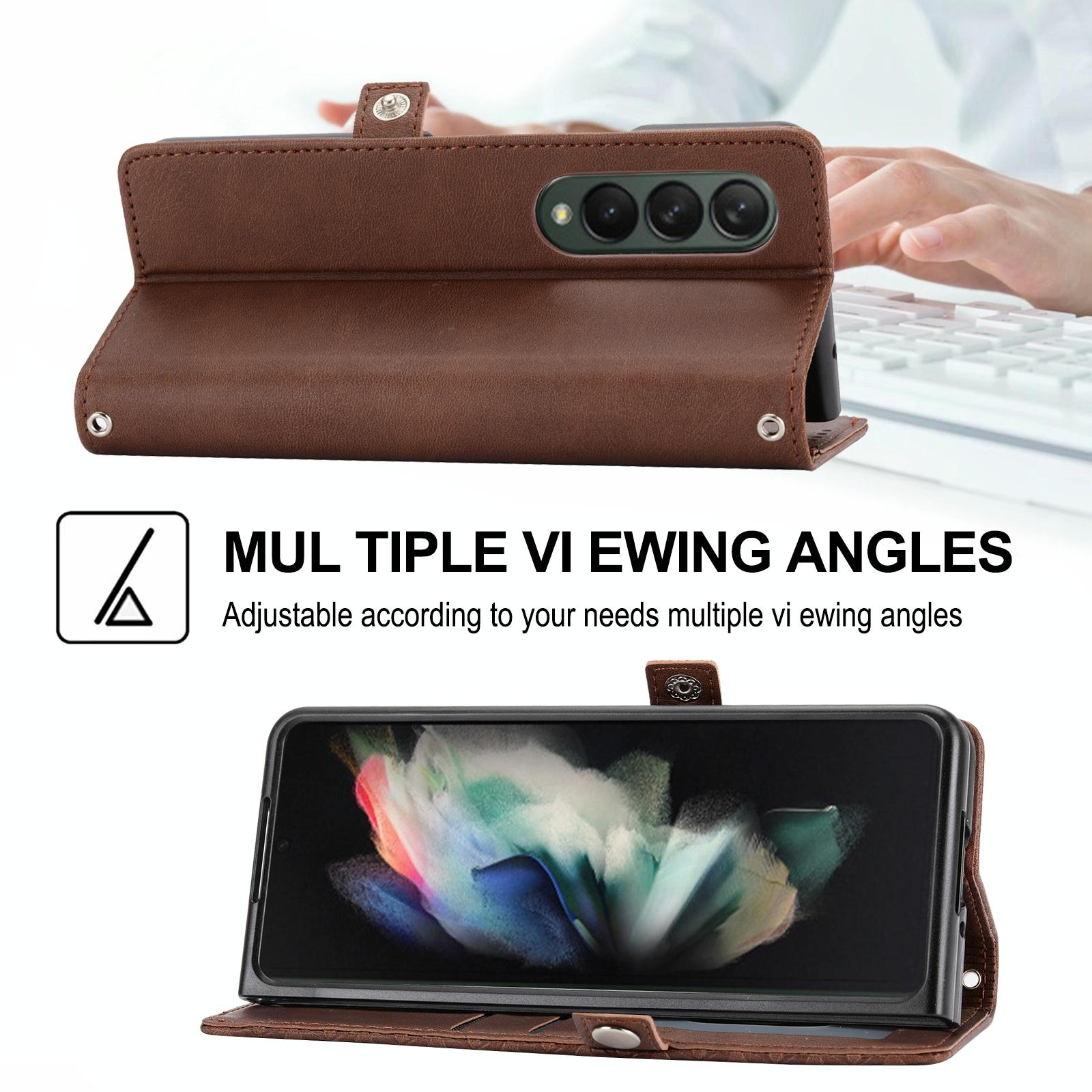 For Samsung Galaxy Z Fold4 5G Textured Leather Phone Case – Cubic Grid Design – Brown