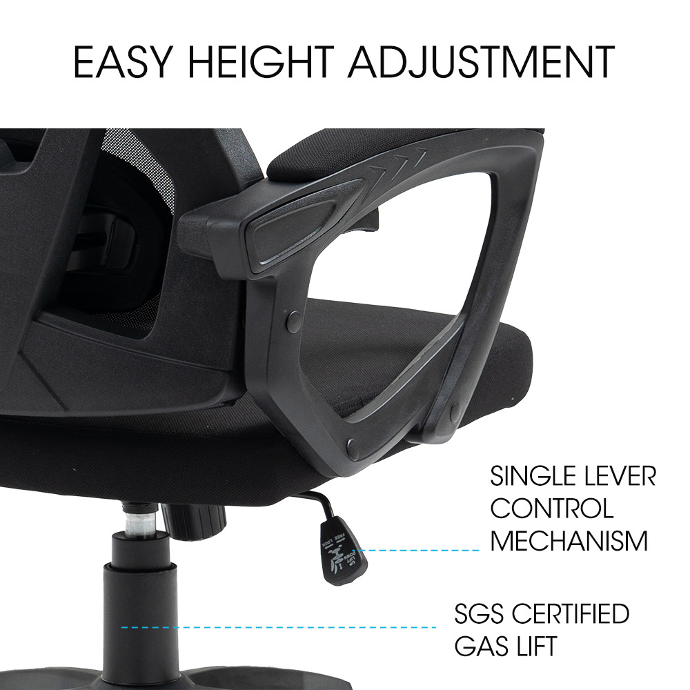 FORTIA Ergonomic Office Desk Chair, Height Adjustable Lumbar Support, Mesh Fabric, Headrest, Black