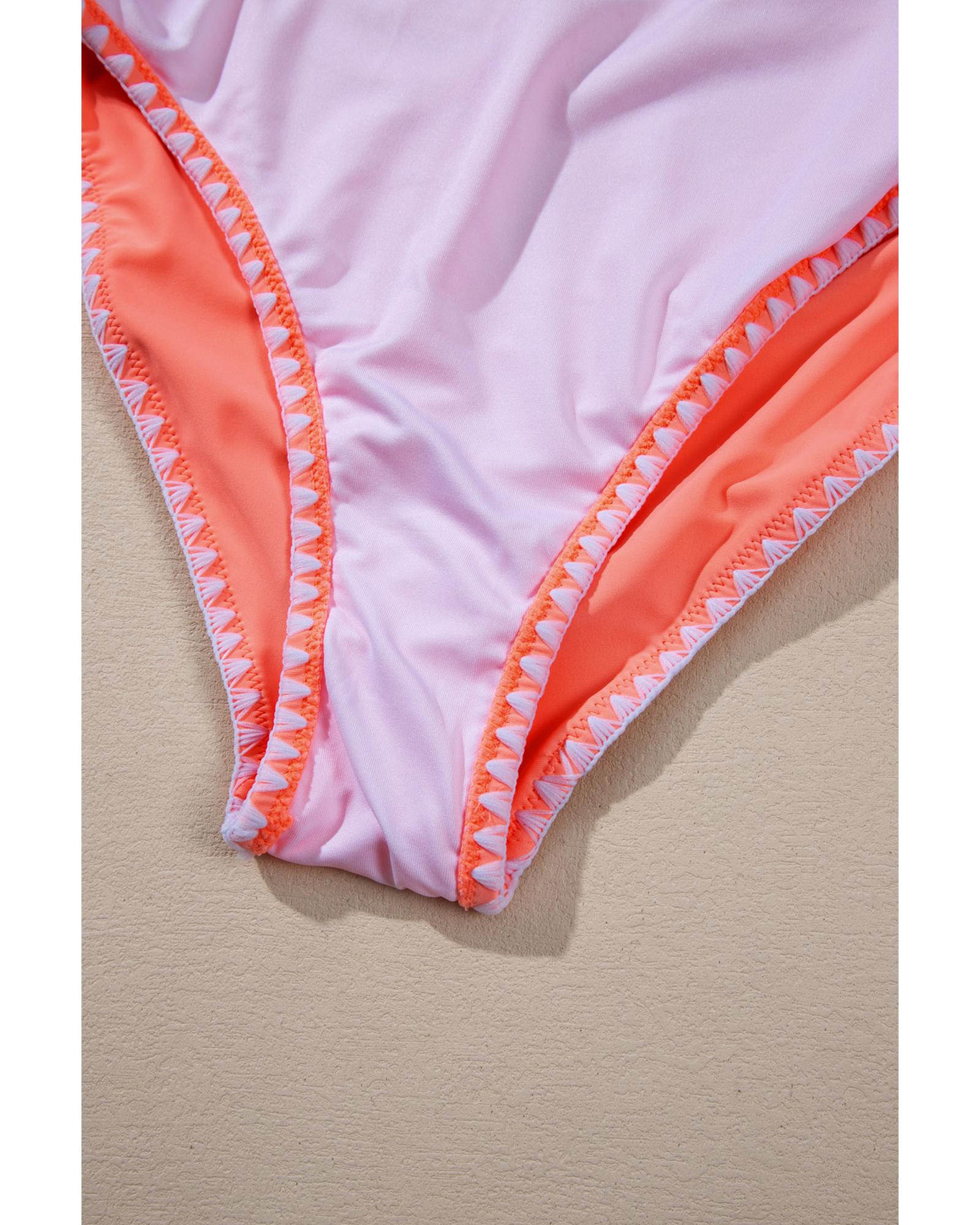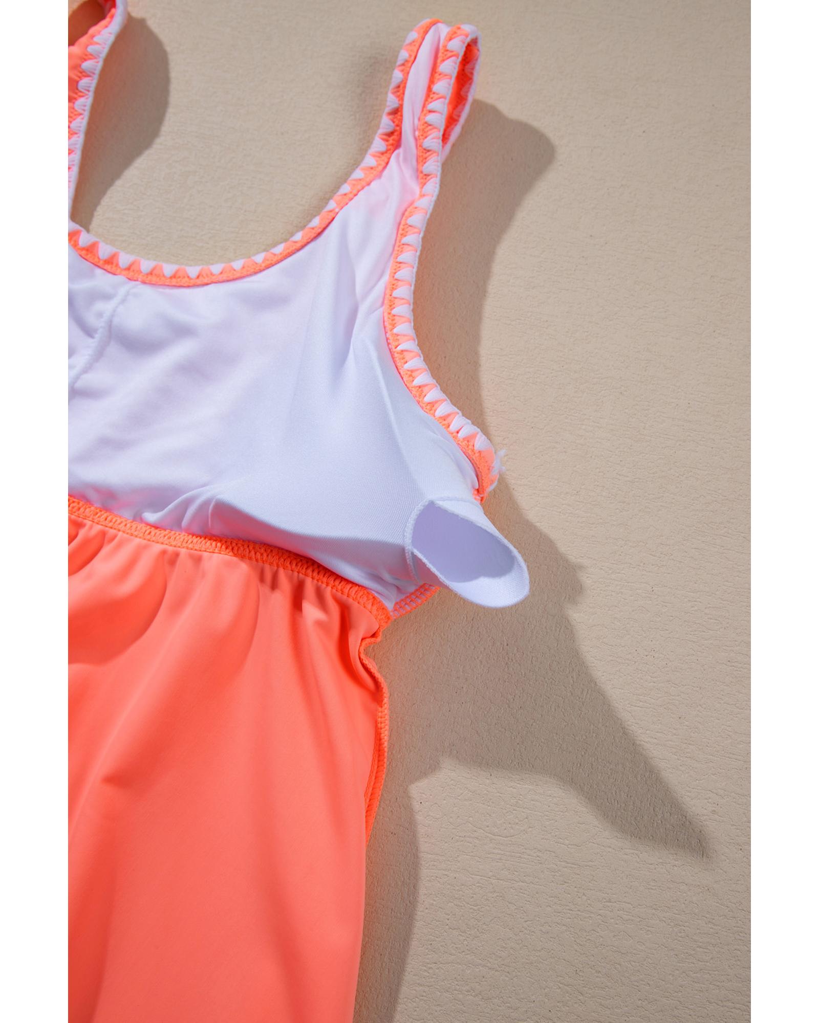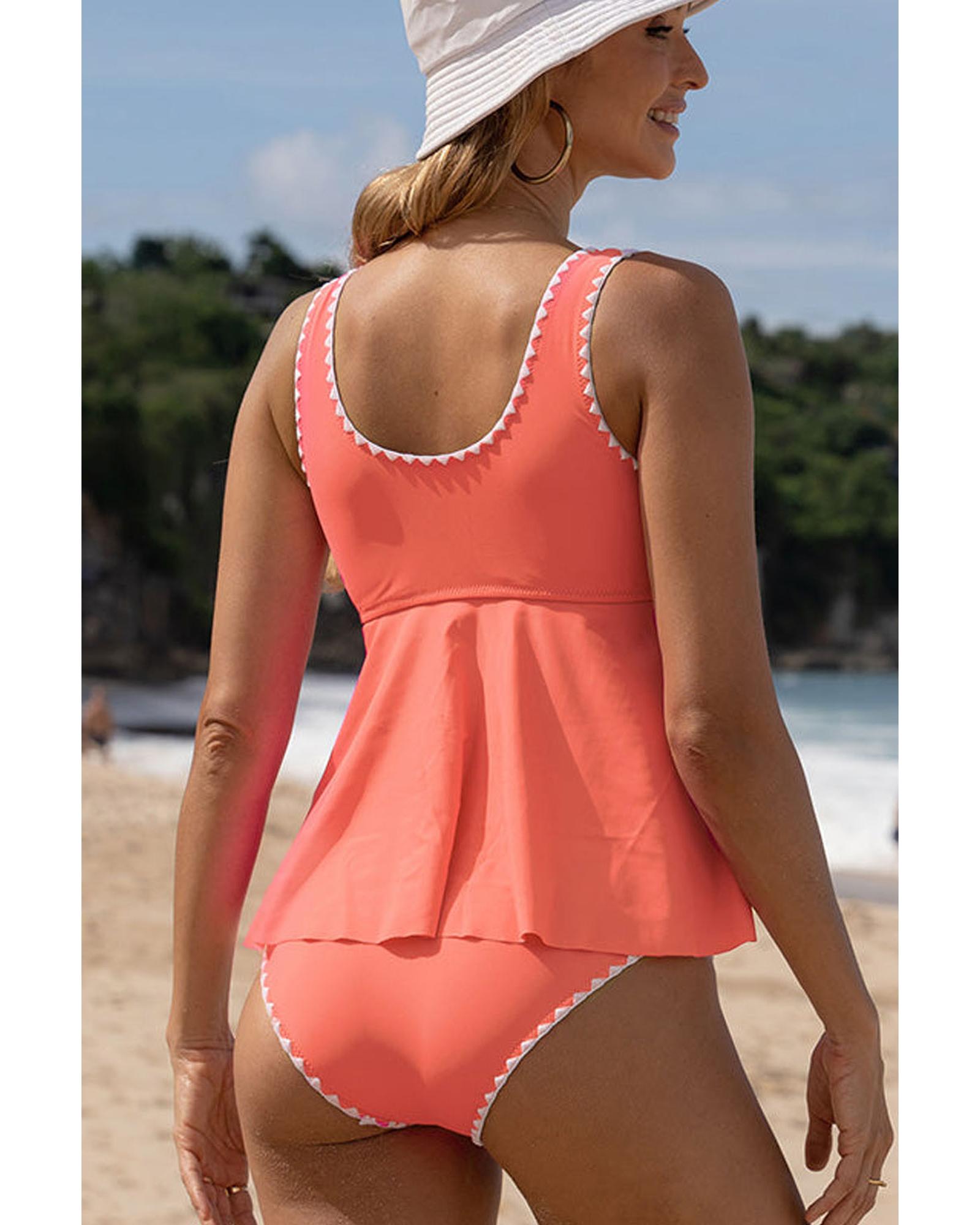 Fresh Salmon Contrast Trim Ruffled Peplum Top Tankini Swimsuit – M