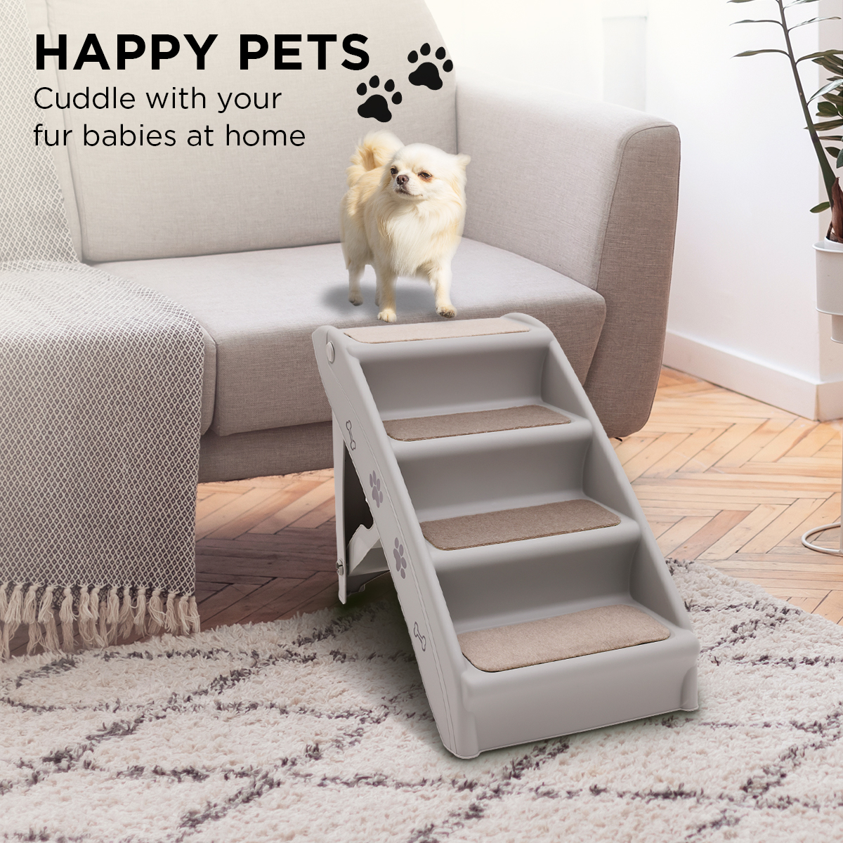 Furtastic Foldable Pet Stairs in Grey – 50cm Dog Ladder Cat Ramp with Non-Slip Mat for Indoor and Outdoor Use