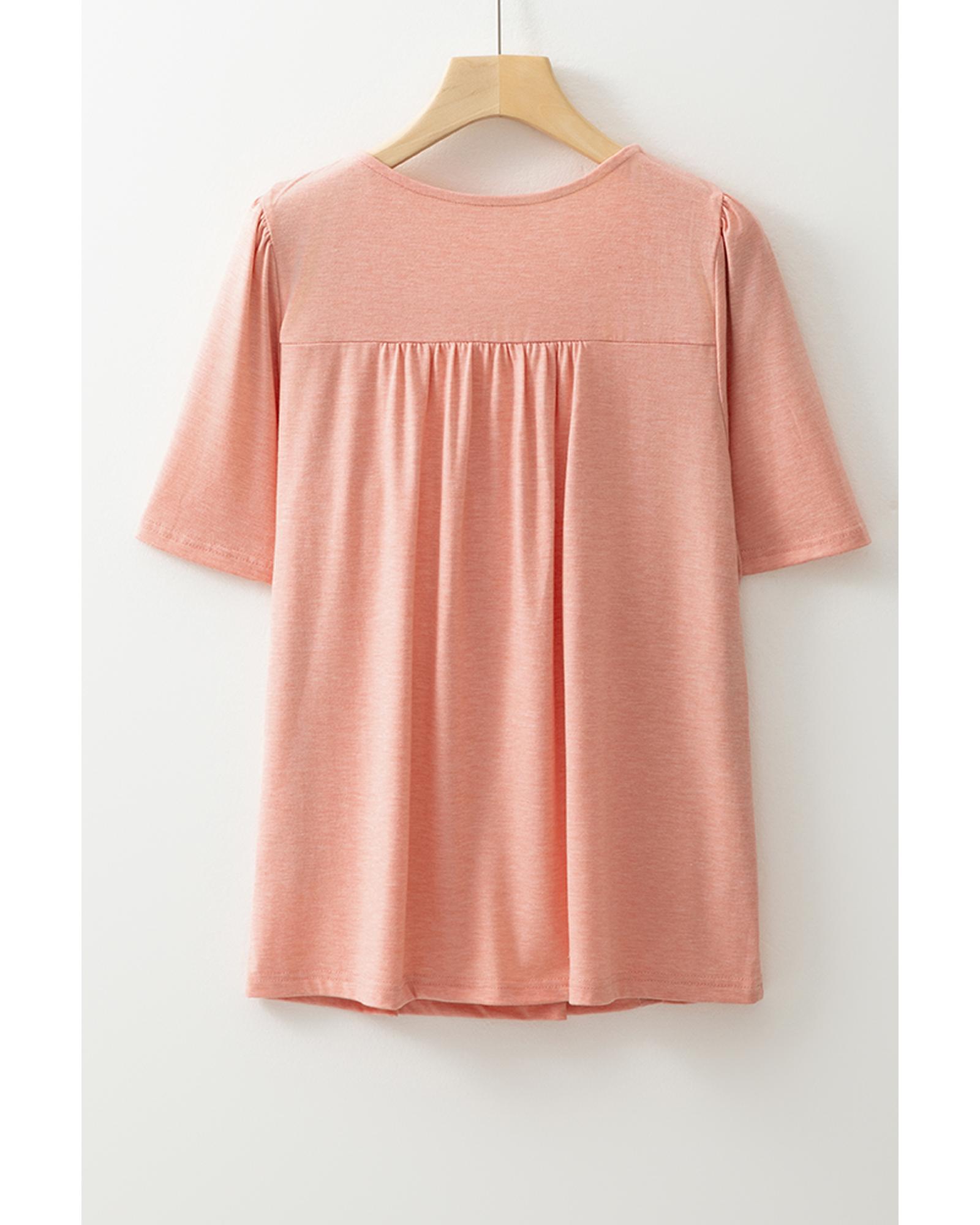 Fushia Smocked Front V Neck Pleated Babydoll Short Sleeve Top – M