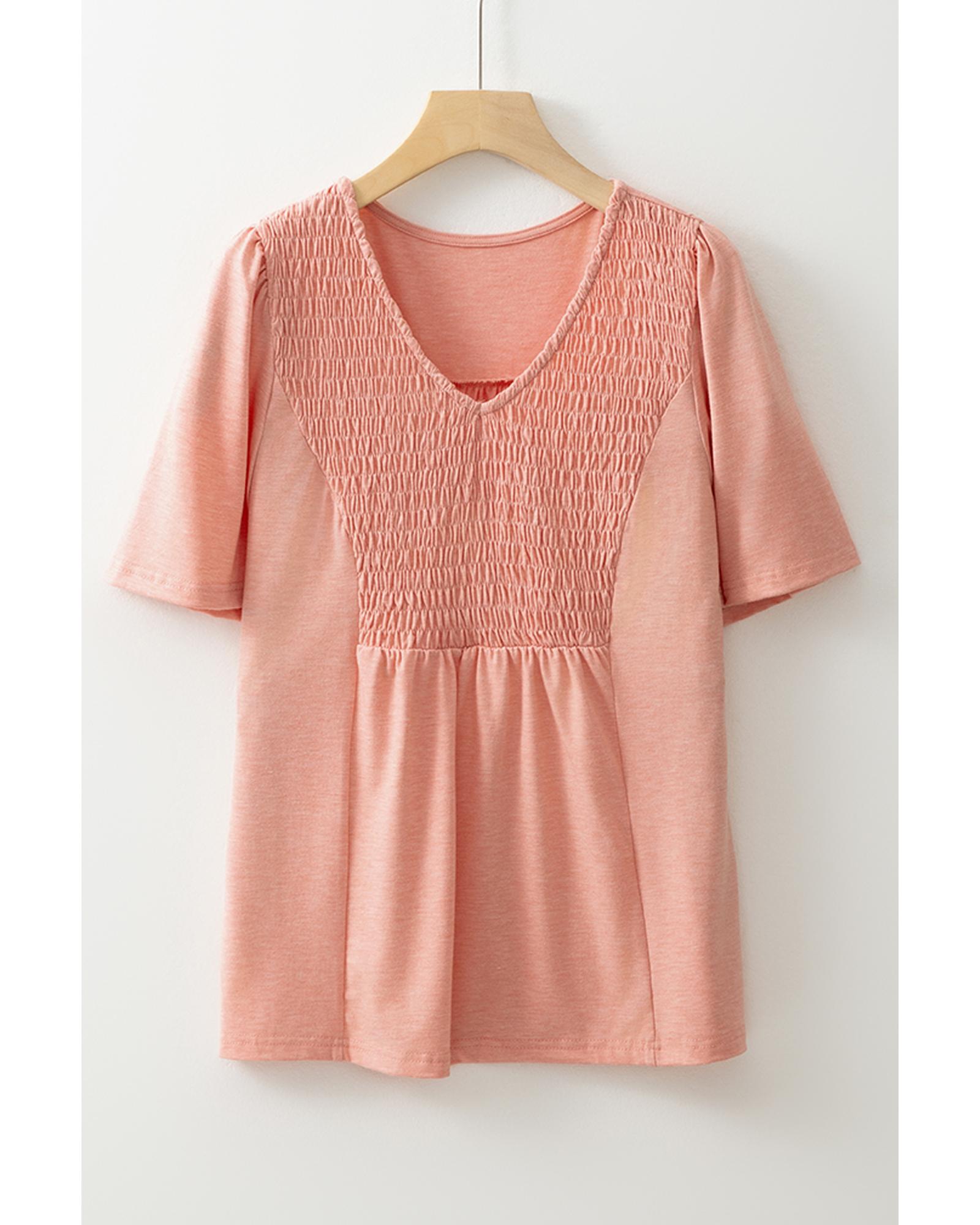 Fushia Smocked Front V Neck Pleated Babydoll Short Sleeve Top – XL
