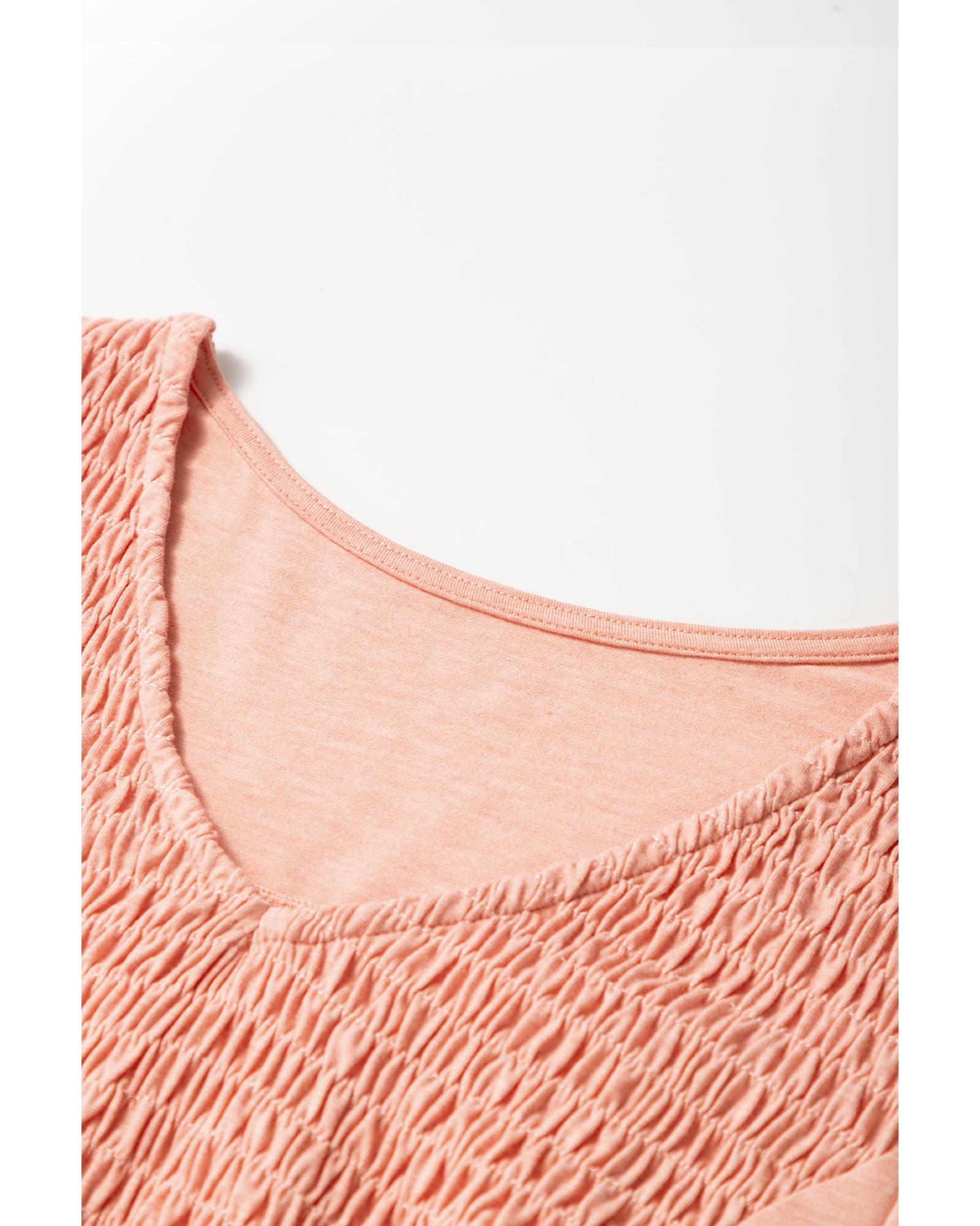 Fushia Smocked Front V Neck Pleated Babydoll Short Sleeve Top - S