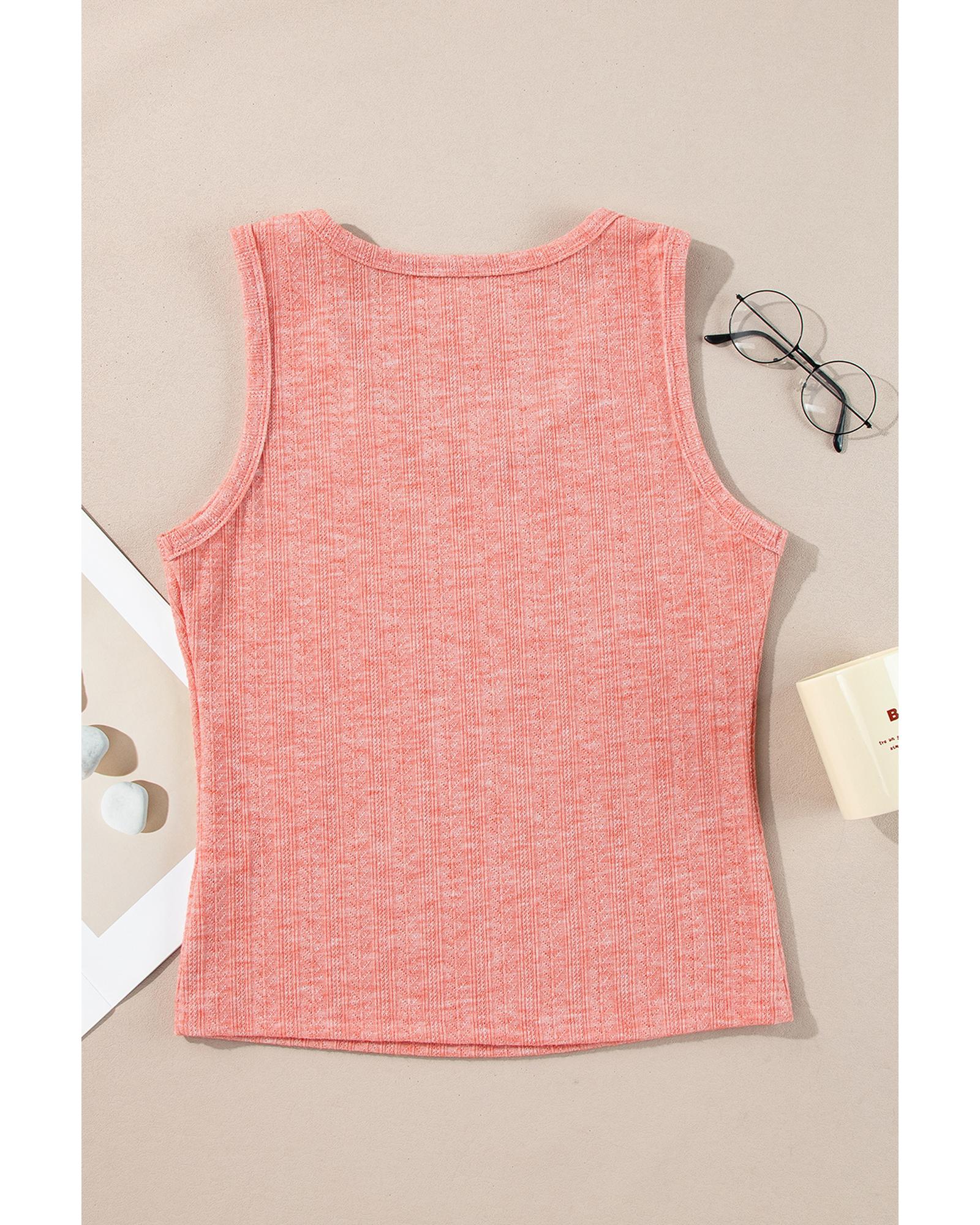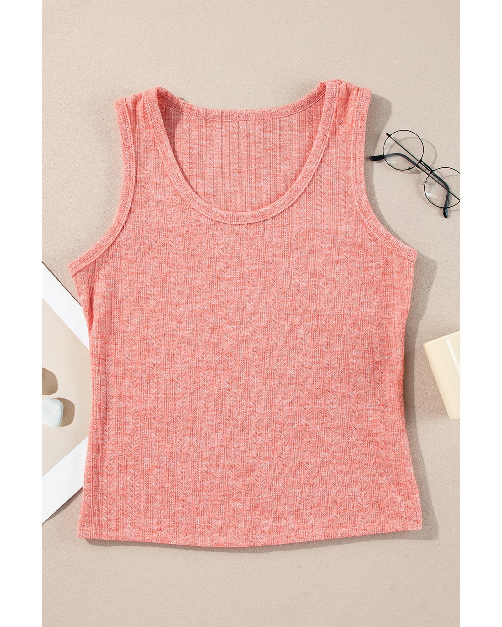Fushia Solid Color Textured U Neck Slim Tank Top – S