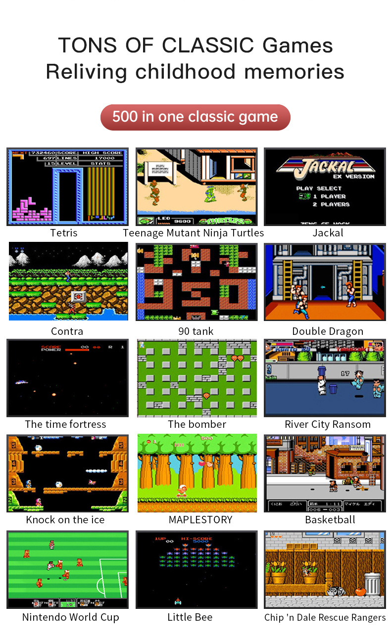 - 500 Classic Games: Includes a variety of nostalgic games, providing hours of entertainment for all ages.