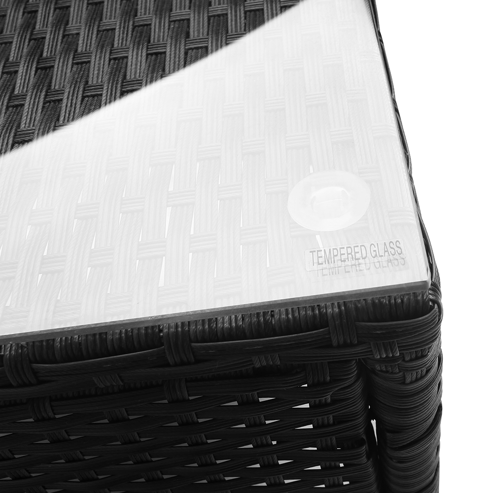 For seating comfort, the cushions comprise 5cm thick high density foam for ultra softness encased in washable and removable cushion covers. Not least, the accompanying table features a 5mm thick tempered glass top for a touch of class and sophistication.