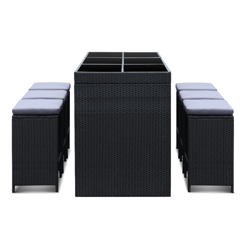 Gardeon 7-Piece Outdoor Bar Set Dining Table Stools Wicker Patio Setting
