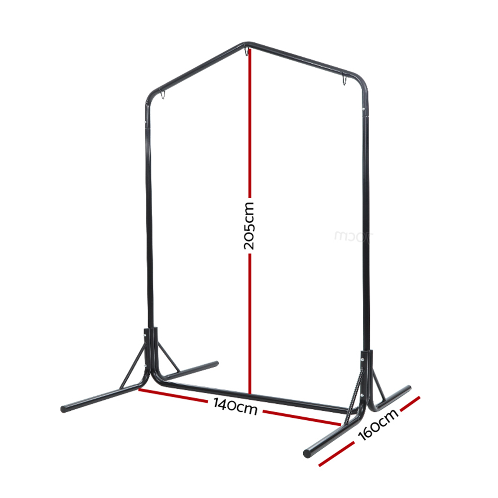 Need a heavy-duty stand for your hammock chair? Look no further than the Gardeon Full-frame Hammock Chair Stand. One of our popular models, the full-frame stand remains a firm favourite with customers who love to have their hammock chairs indoors or outdoors. Crafted from powder-coated steel, the 1.6m frames is designed to be weather-resistant and rust-resistant and strong enough to withstand robust use of up to 200kg weight capacity. Simply hook up your single or 2-seater hammock chair to the reinforced S-hook, adjust the desired height and you are ready for a relaxing time in the chair in the backyard, at the balcony, by the poolside or simply in your living room. Not least, the wide base ensures that the entire ensemble is safe and sturdy for many years of wonderful relaxation and leisure with your hammock chair.