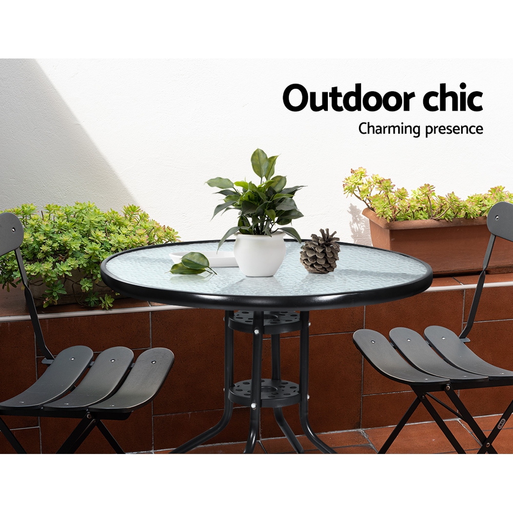 Add a touch of classic elegance to garden, home patio, bistro or café with our Gardeon Bar Table. Stunning in looks and equally as functional, this bar table has plenty going for it. The thick steel frame makes the table durable and the 5mm thick tempered ripple glass does not only look stylish, it is easy to clean. There are also non-slip feet, making the table suitable for use in even the most slippery of situations. Plus, there is a built-in hole about 45mm for your parasol so that now you can relax outdoors for as long as you like during the hot summers without the fear of getting sunburnt.