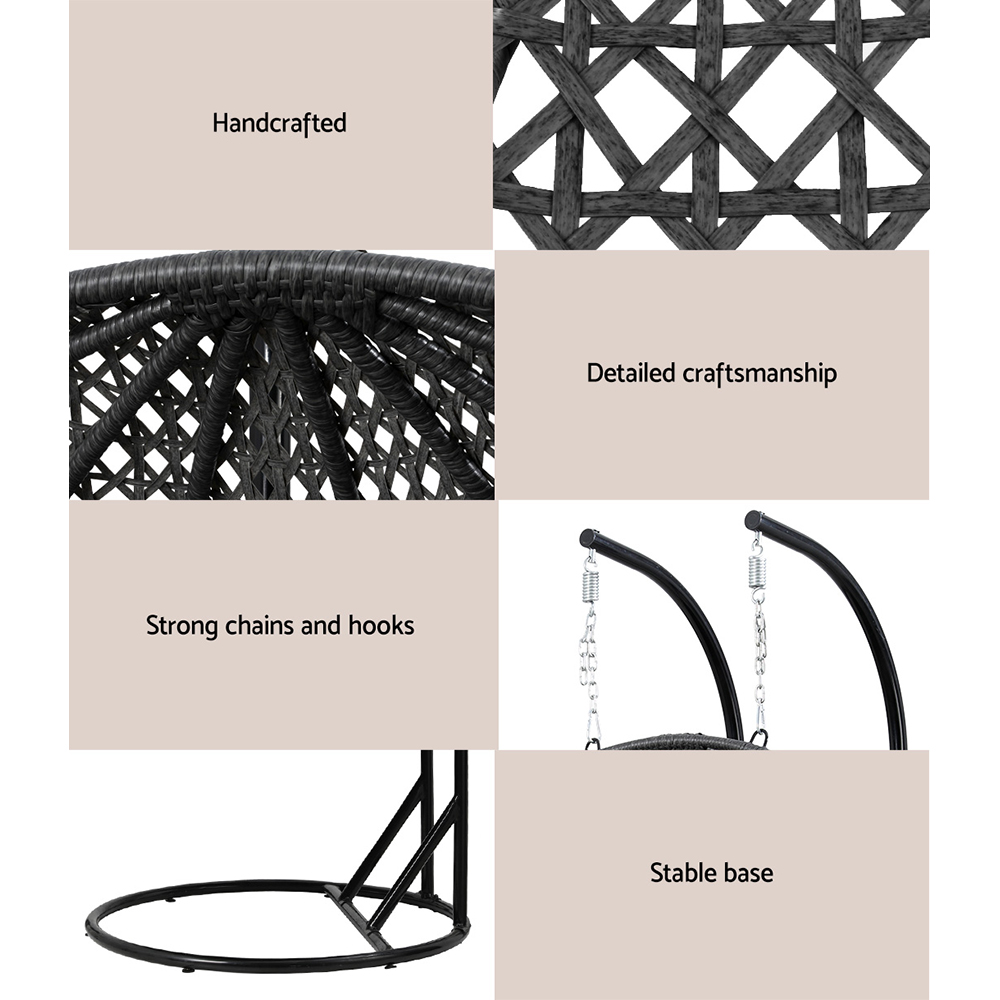 Gardeon Outdoor Egg Swing Chair Wicker Furniture Pod Stand Cushion 2 Seater Grey