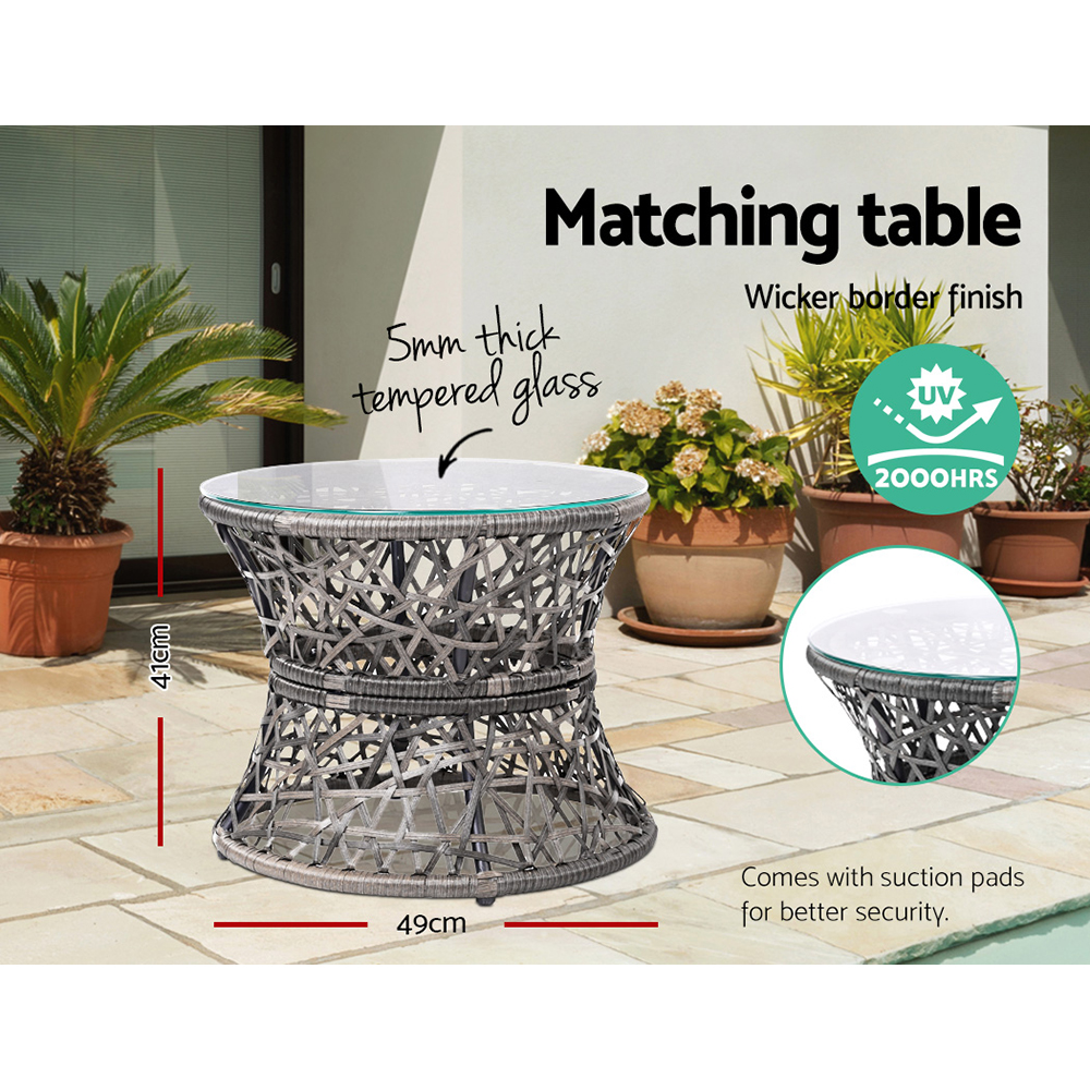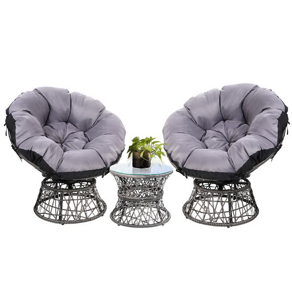 Gardeon Outdoor Lounge Setting Furniture Wicker Papasan Chairs Table Patio Grey