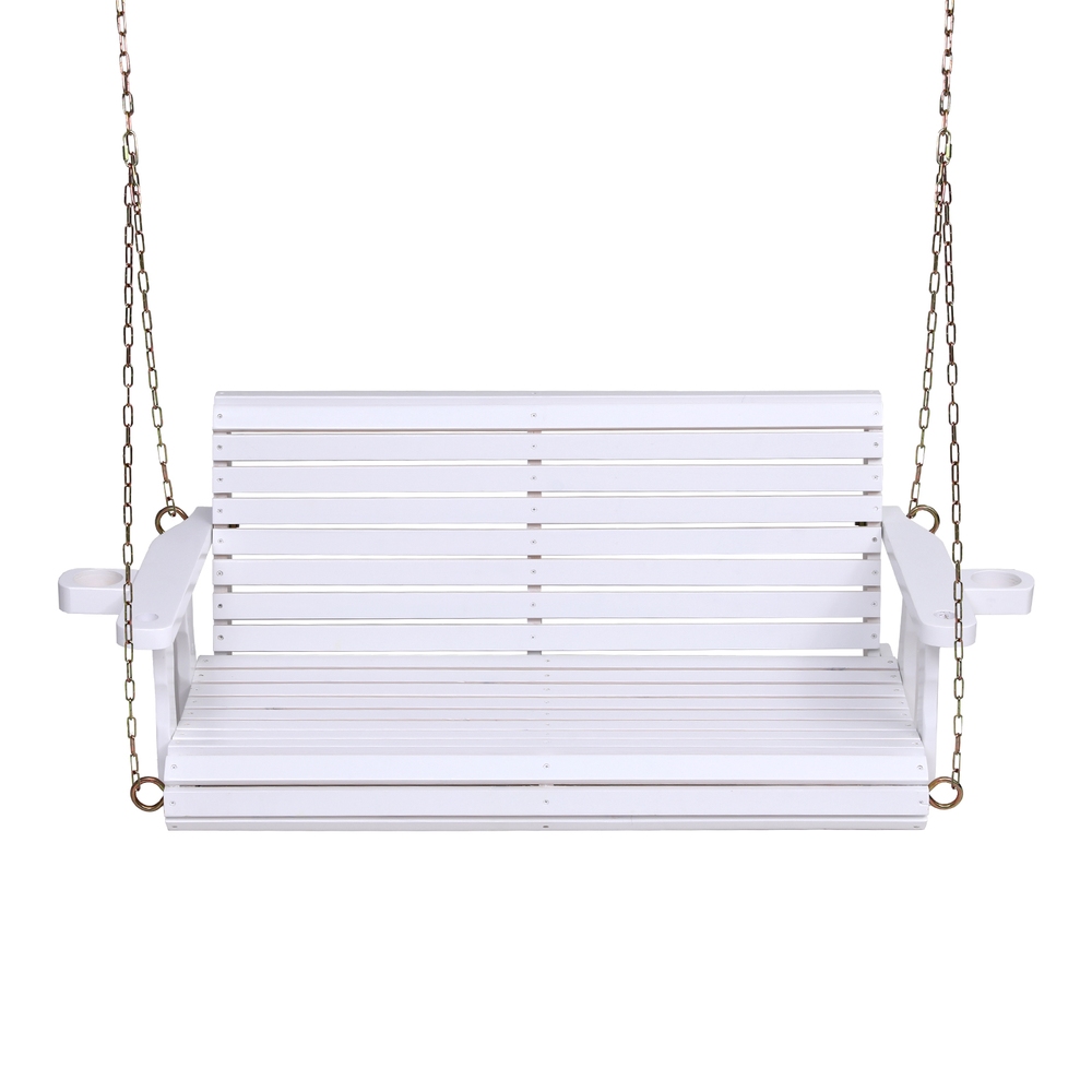 Gardeon Porch Outdoor Swing Chair Patio Furniture Wooden Bench 2 Seat Cup Holder