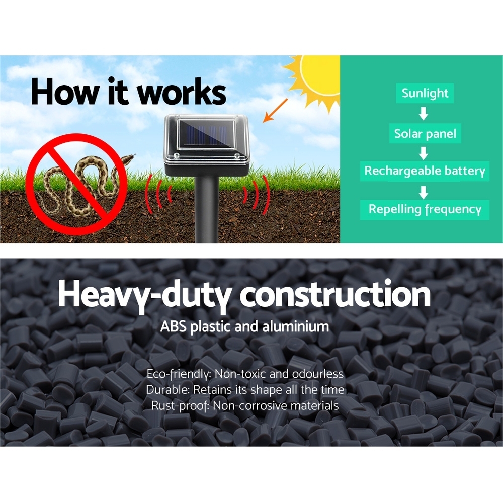 Gardeon Snake Repeller 8X Solar LED Pulse Plus Ultrasonic Pest Rodent Repellent Original price was: $161.99.Current price is: $87.99.
