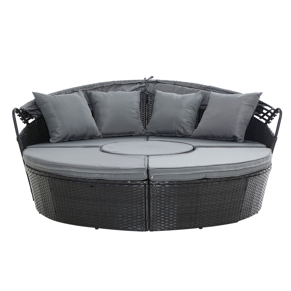 Gardeon Sun Lounge Setting Wicker Lounger Day Bed Patio Outdoor Furniture Black