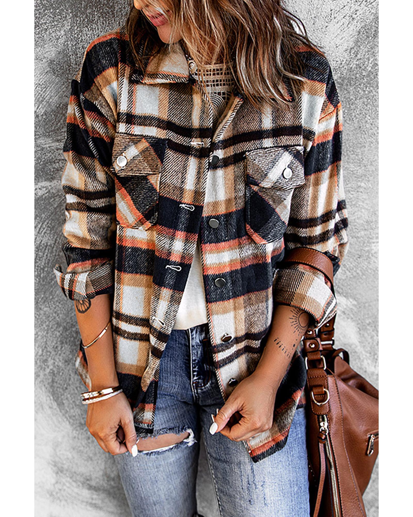 - Geometric plaid print shacket