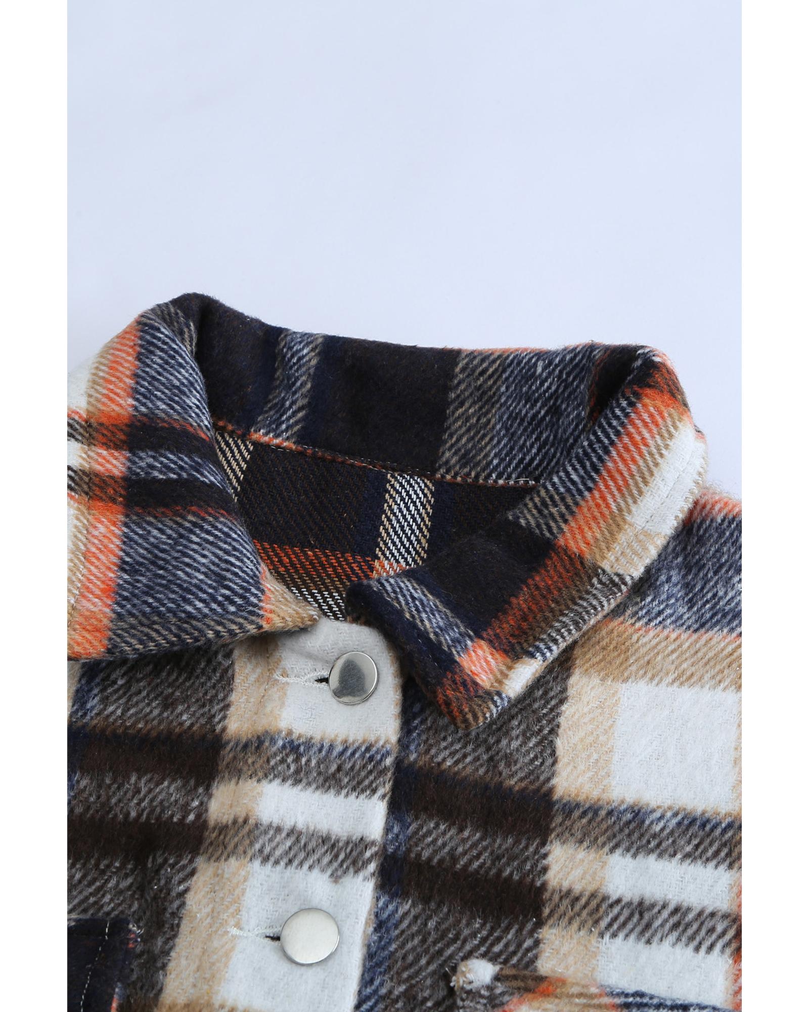 Geometric Plaid Print Pocketed Shacket – S