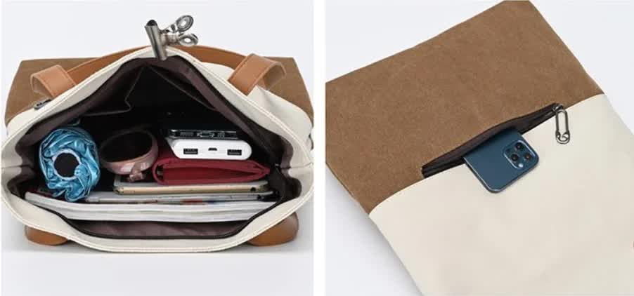 Gery And Brown Canvas Tote Bag for Women – Multi-Use Shoulder Handbag & Backpack, Large Capacity, 30x10x40cm