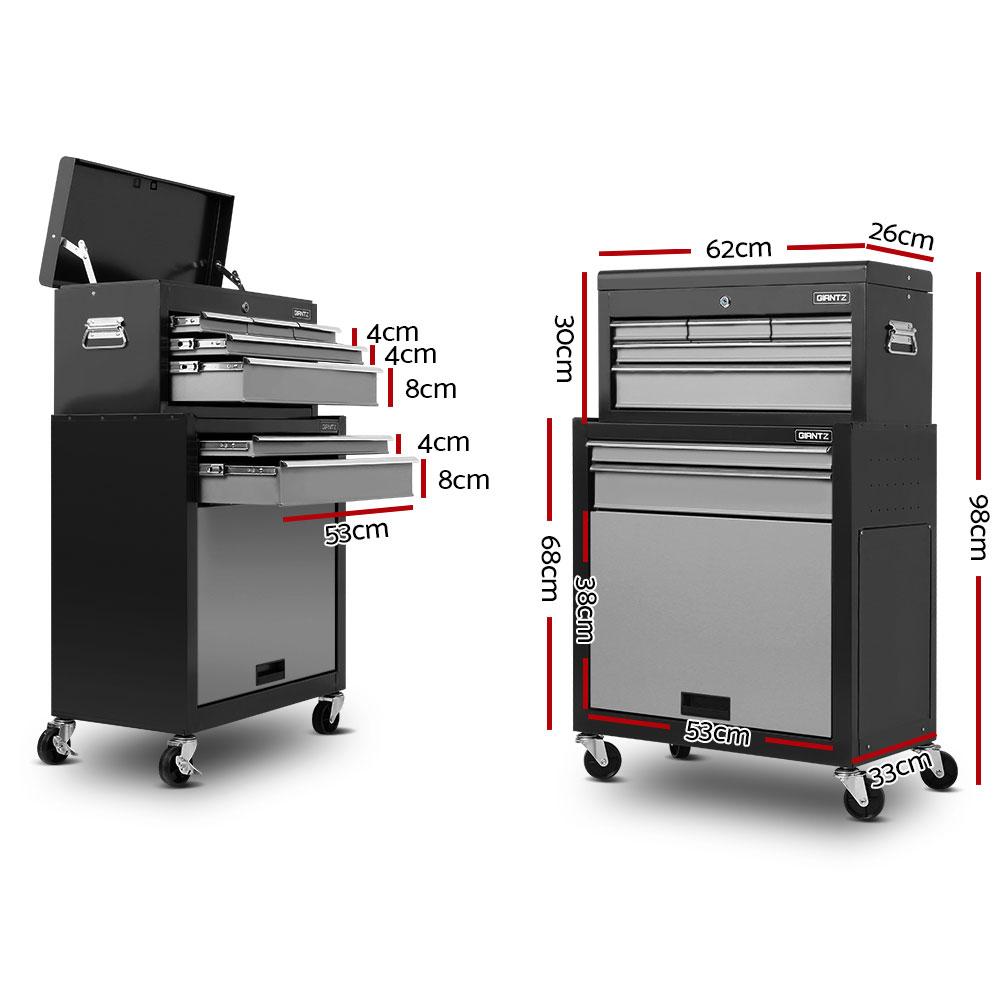 This robust, multi-drawer Giantz Tool Trolley is an essential for any workshop. Crafted from durable steel, it features smooth ball-bearing slides for easy access and a secure lock system for safety. Its spacious design includes varying drawer sizes to accommodate tools of all shapes, complete with non-slip liners. The chest is also mounted on omni-directional castors with locakble front wheels, ensuring a smooth maneuverability and stable positioning. Sleek and functional, it’s perfect for organizing and protecting your valuable tools.
