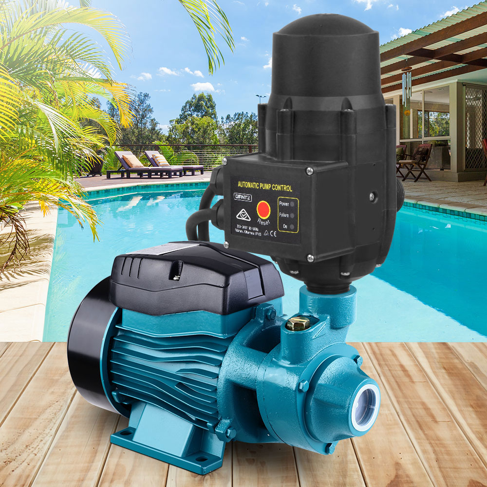 When low water pressure gets you down, power it up with our Peripheral Water Pump. Pumping out at a rate of 35L/min with a delivery head of 35m and suction up to 8m, it is the perfect solution where constant on-demand water pressure is needed at the open and close of any tap. Use it to pump your pool, increase water pressure in your pipes, water your gardens, irrigate, clean and more. The water pump features an IP-rated commercial copper motor, rust-resistant brass impeller, cast iron pump body, 1-inch inlet and outlet ports, efficient TEFC cooling system, mountable base and a power box that is both waterproof and dirt-proof. You can also accurately control the pressure to your precise requirements with the fully automatic controller and monitor it at a glance of the pressure gauge. Power to the pump is as simple as plugging it straight into any Australian standard socket. There is no need of any sophisticated knowledge of pumping, just a little imagination of how much you can do with it. It will pump up the water in no time.