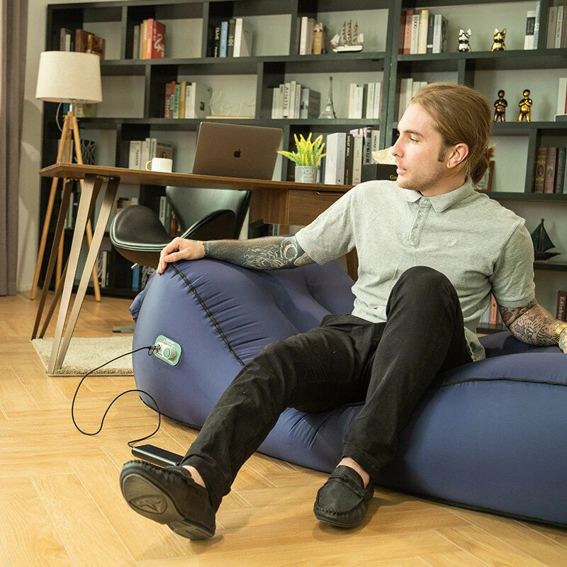 - The unique built-in air pump design with 2600mAh internal battery capacity which can inflate the lounger for 25 times in one full charge. With a rating of IPX4, it is resistant to water splashes from any direction (do not soak in water). Lightweight and compact
