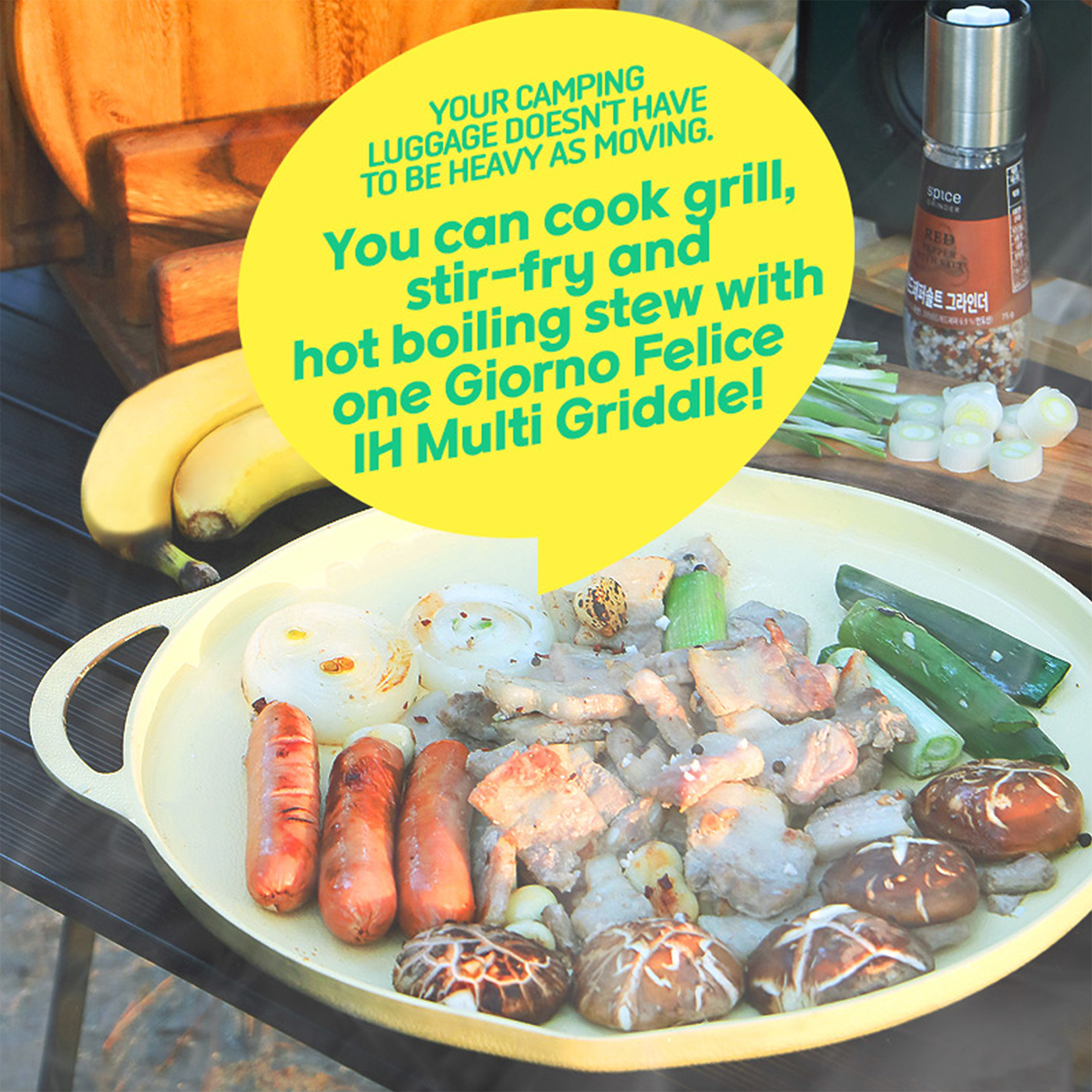 Giorno Felice IH Griddle Pan 34cm Ceramic Non-Stick Camping Korean Stew Round