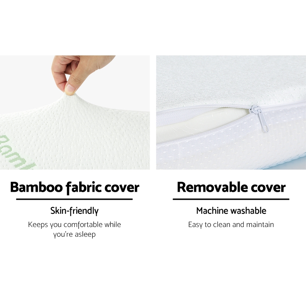 Trouble sleeping with your traditional pillow? Not getting the right support with it for your neck and head? Then it is time you give it a rest and turn to our Giselle Bedding Memory Foam Pillow. Filled with 100% high-density memory foam filling topped with a wide cool gel layer, our pillow is cool, breathable, and bacteria resistant. The contoured body-friendly butterfly-shaped design lets you relax your neck and shoulder muscles to eliminate the stress and strain that you experience with standard pillows. The versatile pillow has two ends, high and low, to suit both side sleepers and back sleepers. Our memory foam pillow maintains its shape throughout the night and will not clump together or shift during your sleep. The pillow comes in a zipped bamboo fabric cover that can be easily removed for washing. Dont let a poor pillow let you down with an uncomfortable snooze. Rest your head on our Giselle Bedding Memory Foam Pillow for many restful nights of sleep.