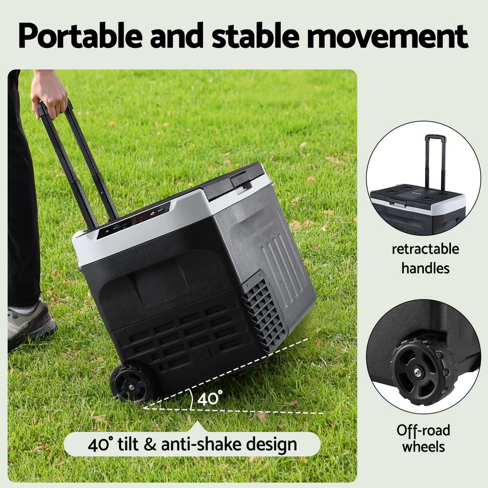 In the market for a portable fridge or freezer? Our exceptional Glacio Portable Fridge/Freezer is one cool device with extraordinary performance. Perfect for use on the road or indoors, the fridge easily plugs into any 12V, 24V or 240V power point for the powerful compressor to kick in its cooling prowess. A simple LCD with even simpler operational setting allows you to start the refrigeration process easily: just turn on the power, set the temperature, and the genuine compressor will do the rest. The compressor is very energy-efficient,offering ECO and MAX cooling modes about 1.32kWh for every 24 hours of use. When running on DC power, the battery has 3-stage charging protection that cuts off charging once the voltage setting is attained to ensure longer-lasting battery life. The fridge has plenty of space for all your food and drinks, and you can adjust the temperature down to -20 ?. The heavy-duty exterior is designed to handle all the knocks and bumps of a road trip and comes with 4 cup holders on the top lid, plus easy carry handles,retractable handle and off-road wheels for portability. With so much going for it, our Glacio Portable Fridge/Freezer is surely your choice of a reliable cooler for all your outdoor (or indoor) escapades.