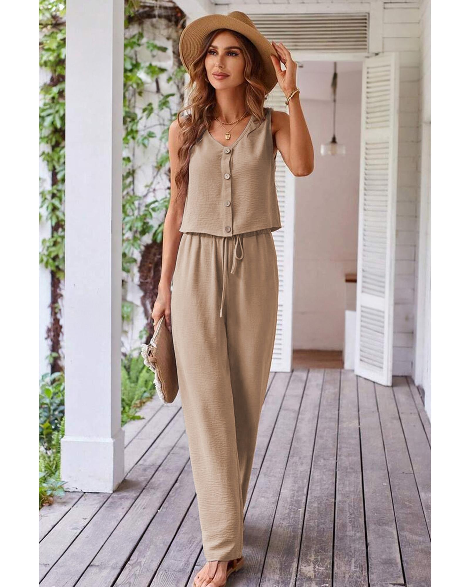 - Stylish buttoned vest and wide leg casual pants coordinate set