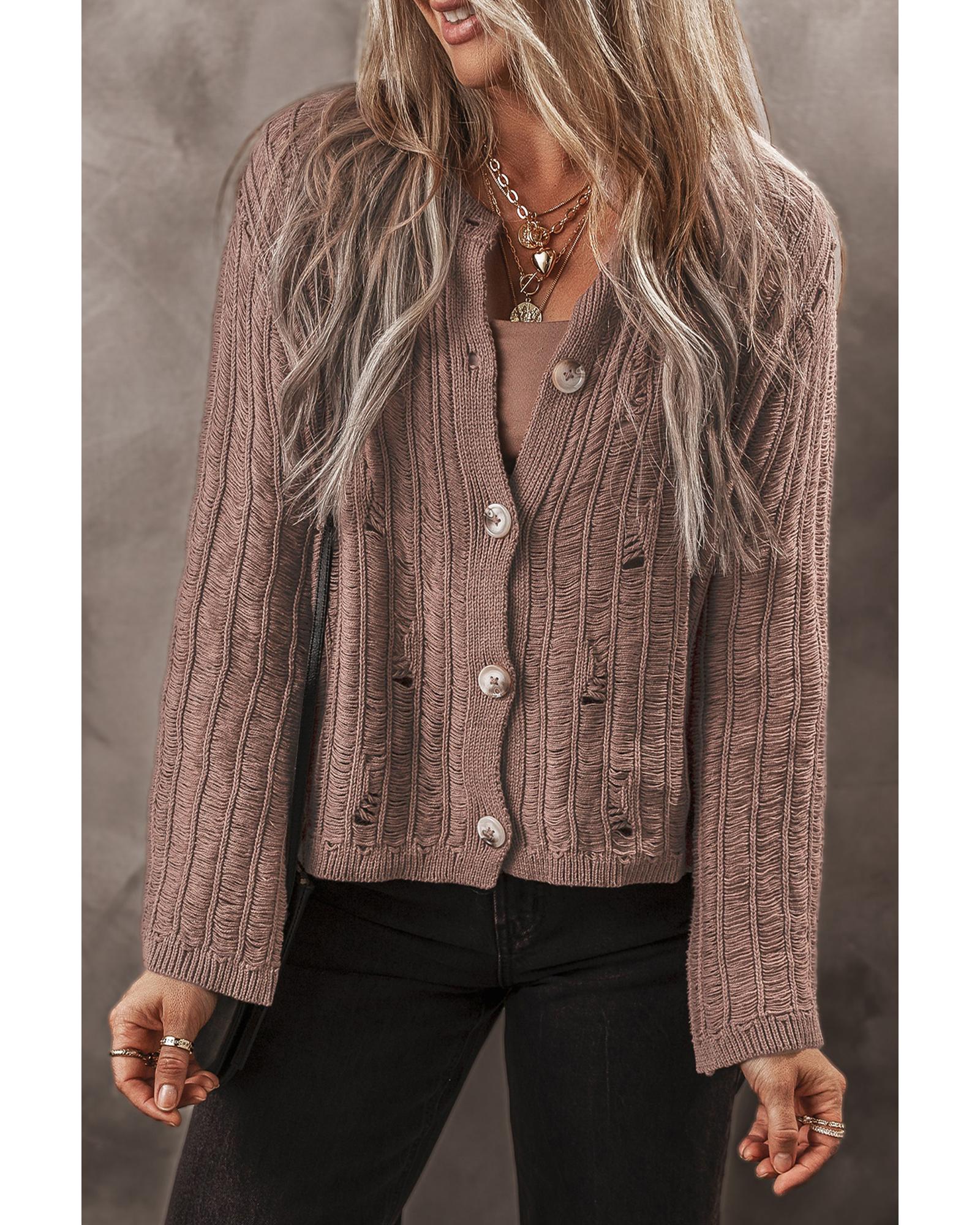 Apricot Casual Hollowed Knit Dolman Sleeve Cardigan - XL
