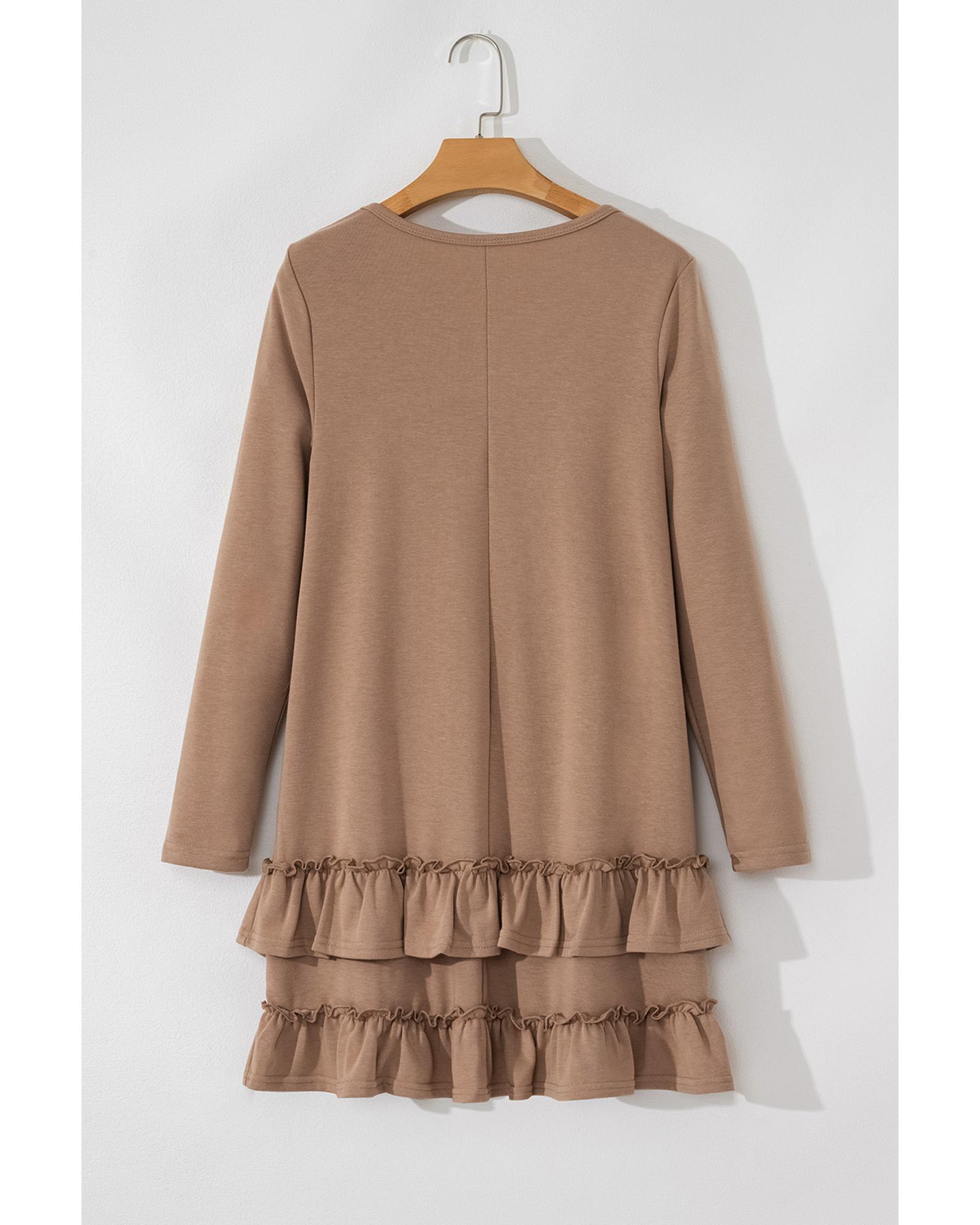 Goat Scoop Neck Tiered Ruffled Hem Long Sleeve Mini Dress – L