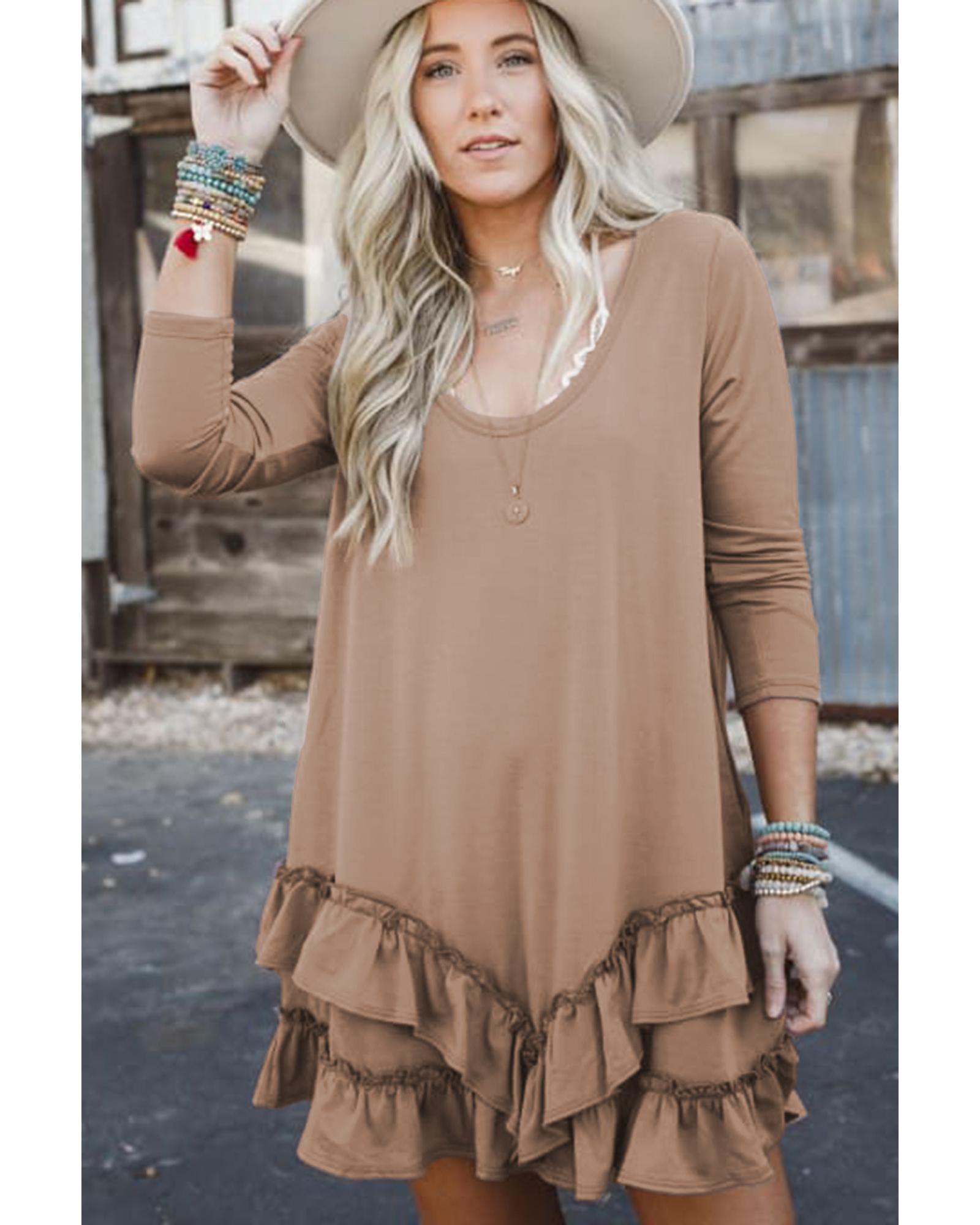 Goat Scoop Neck Tiered Ruffled Hem Long Sleeve Mini Dress – M
