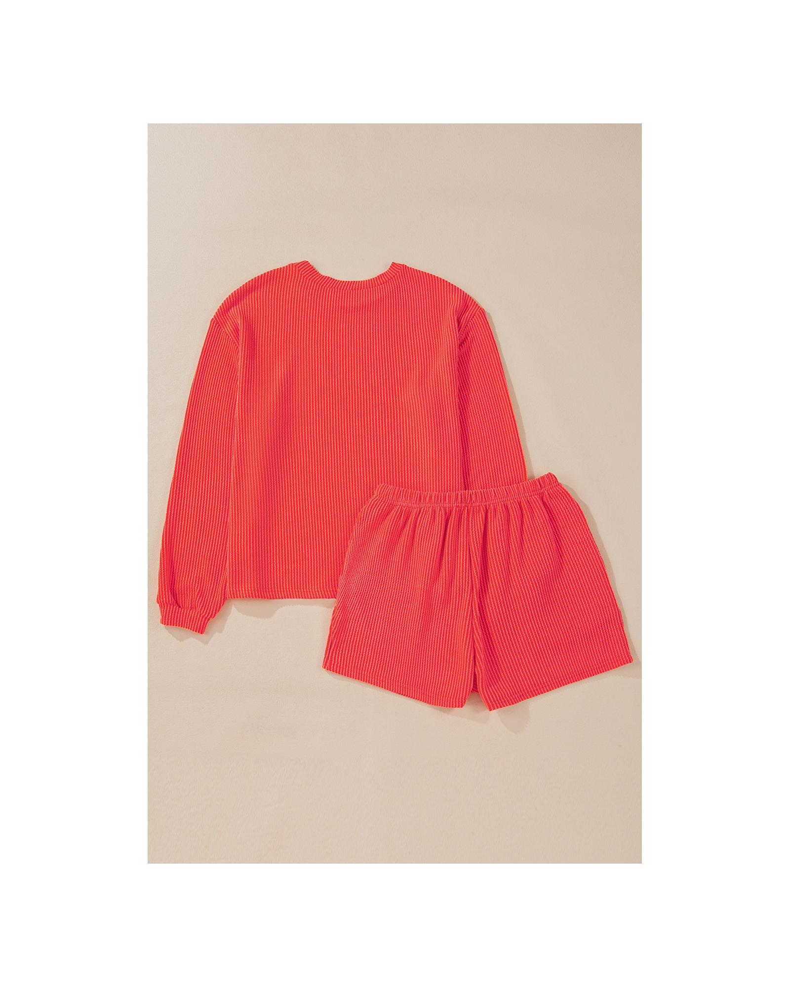 Gold Flame Heart Shape Graphic Corded Pullover and Shorts Outfit – L