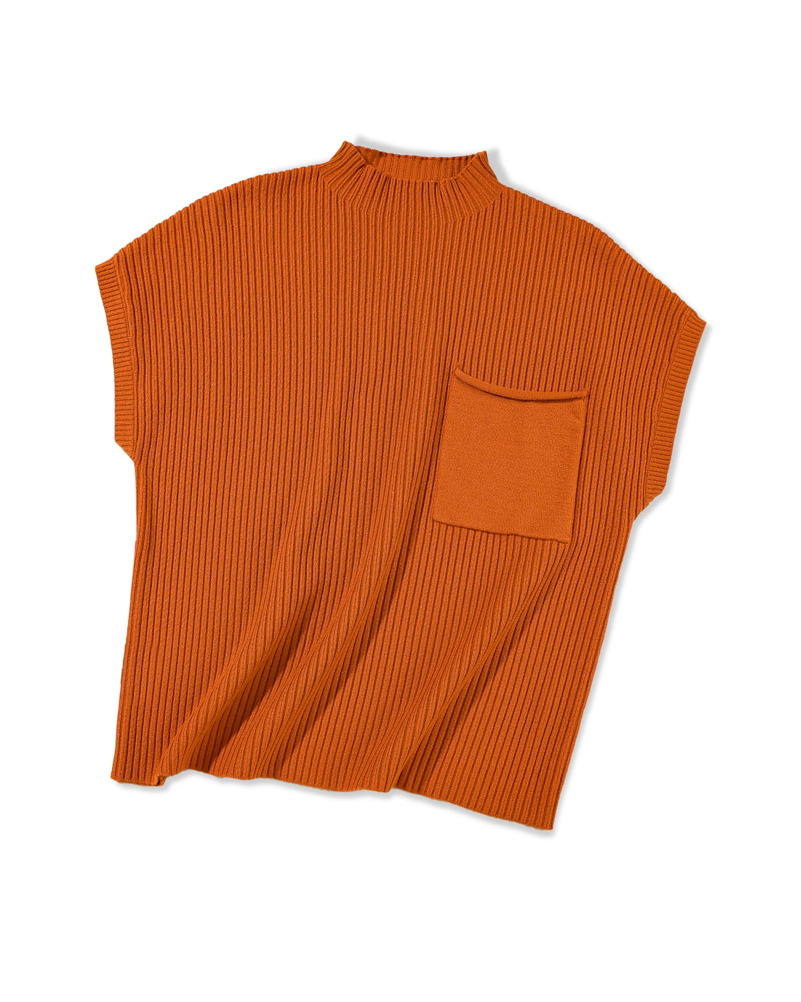 - Gold Flame Patch Pocket Ribbed Knit Short Sleeve Sweater