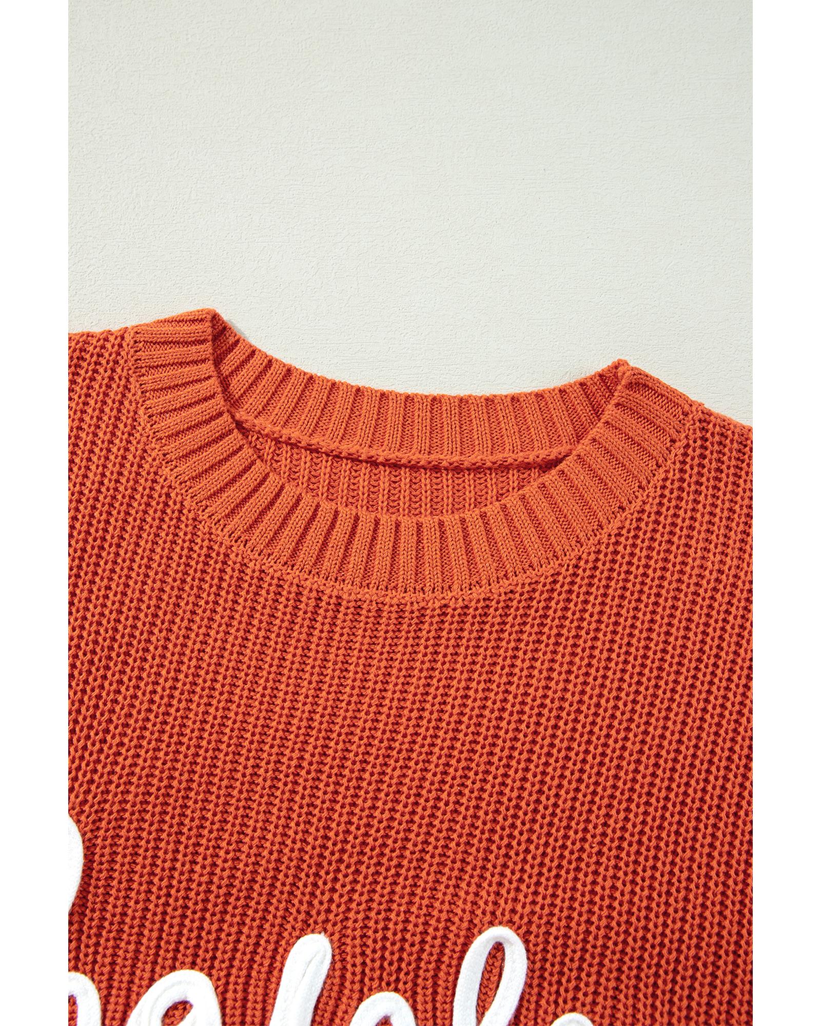 Gold Flame Thanks Giving Letter Graphic Crew Neck Sweater – M