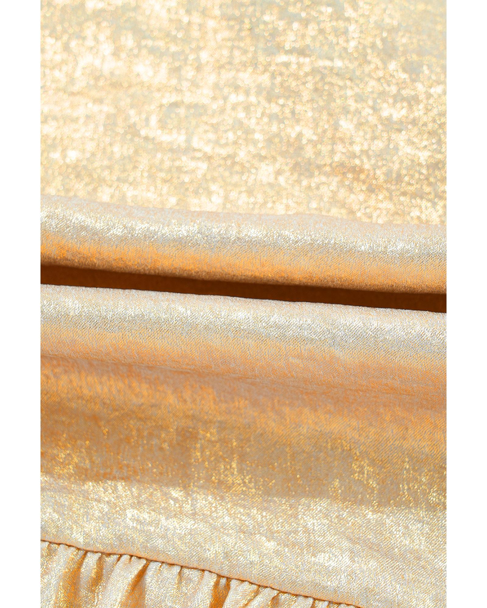Gold Metallic Frilled V Neck Puff Sleeve Babydoll Blouse – S