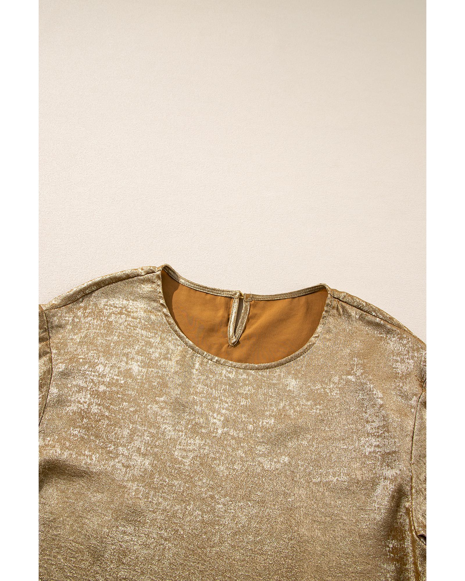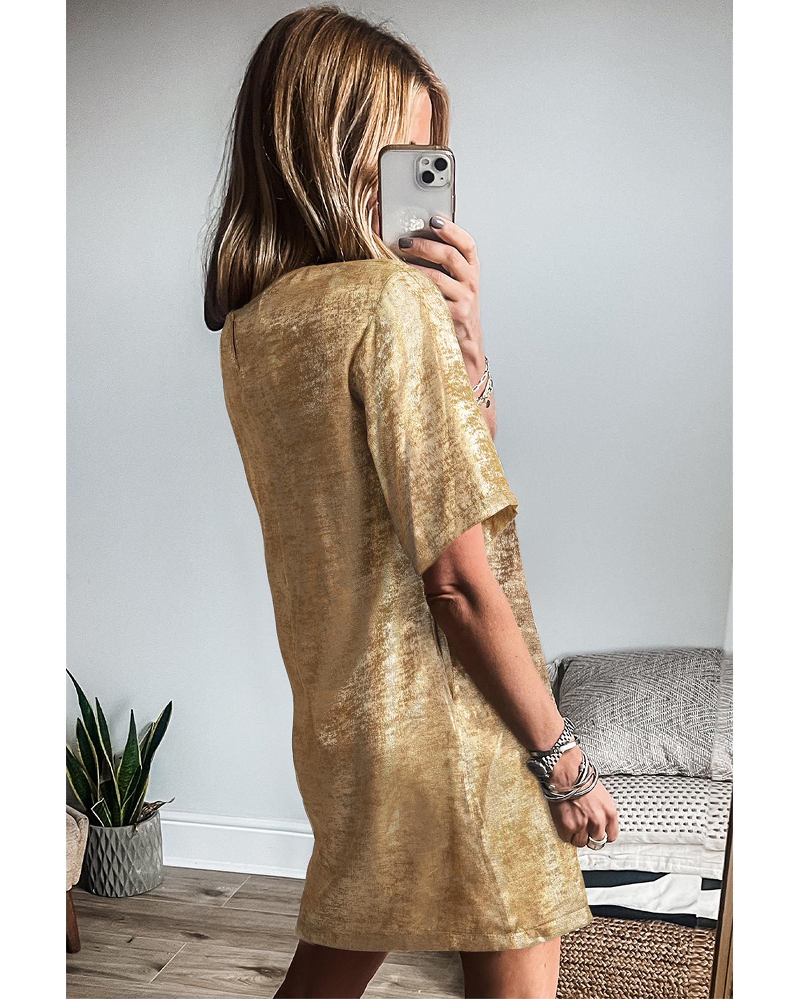Gold Metallic Luster Crewneck Mini T-Shirt Dress – L