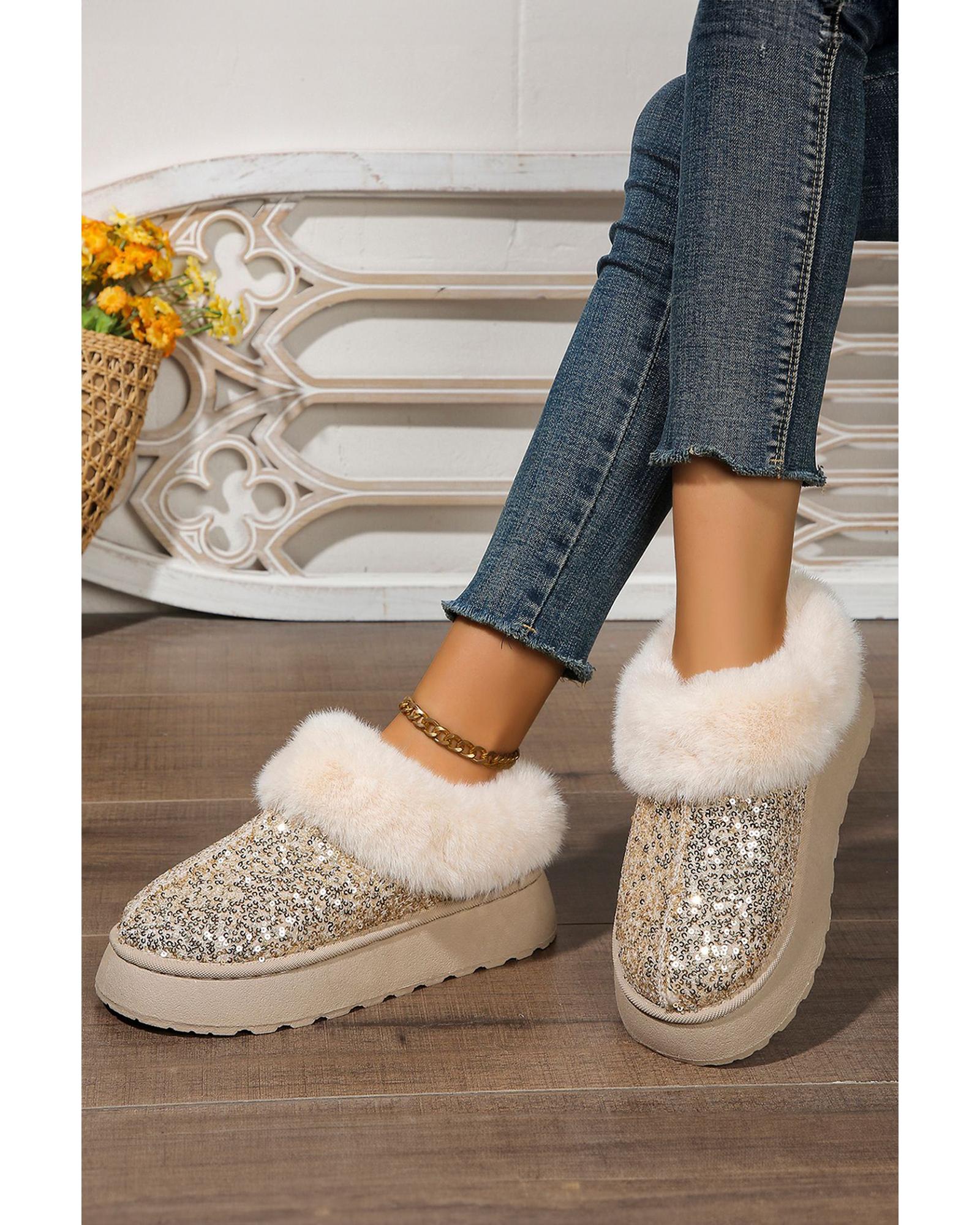 Gold Sequin Plush Lined Thick Sole Snow Boots – 38 EU