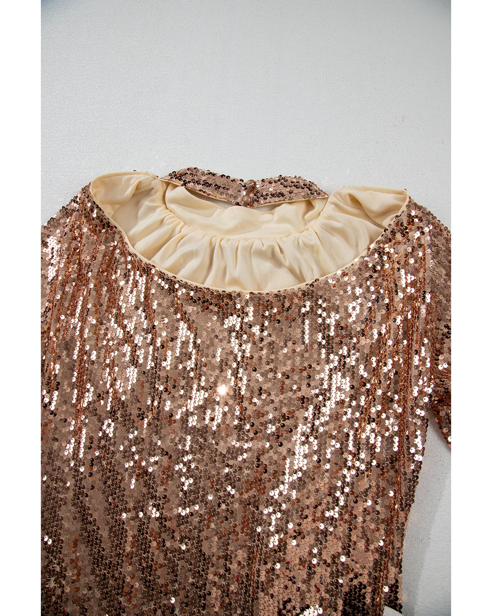 Gold Sequined Long Sleeve Cutout Back Mini Dress – S