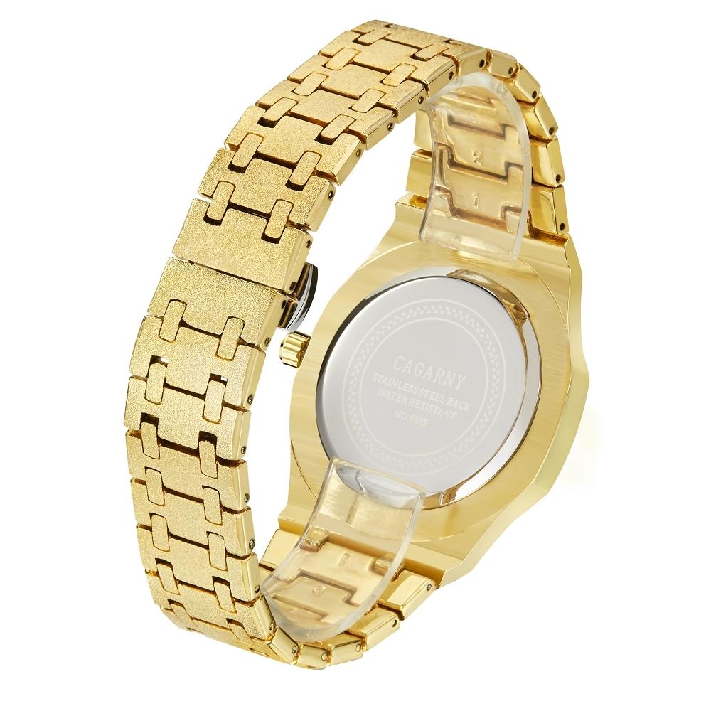 • 1 x 6885 Octagonal Dial Quartz Dual Movement Men Stainless Steel Strap Watch Gold Shell Black Dial